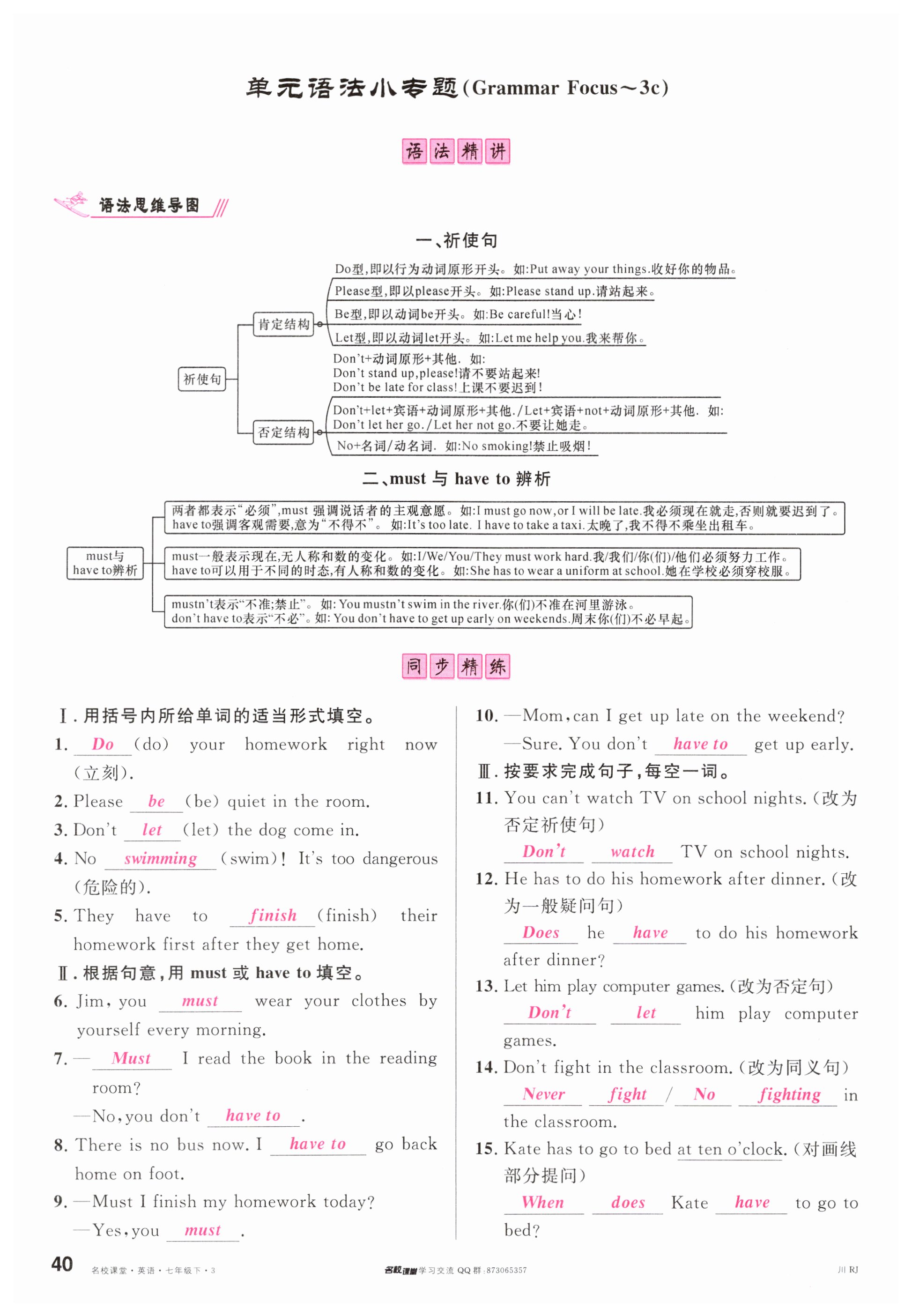 注:目前有些书本章节名称可能整理的还不是很完善,但都是按照顺序排列的,请同学们按照顺序仔细查找。练习册 2024年名校课堂七年级英语下册人教版四川专版 答案主要是用来给同学们做完题方便对答案用的,请勿直接抄袭。