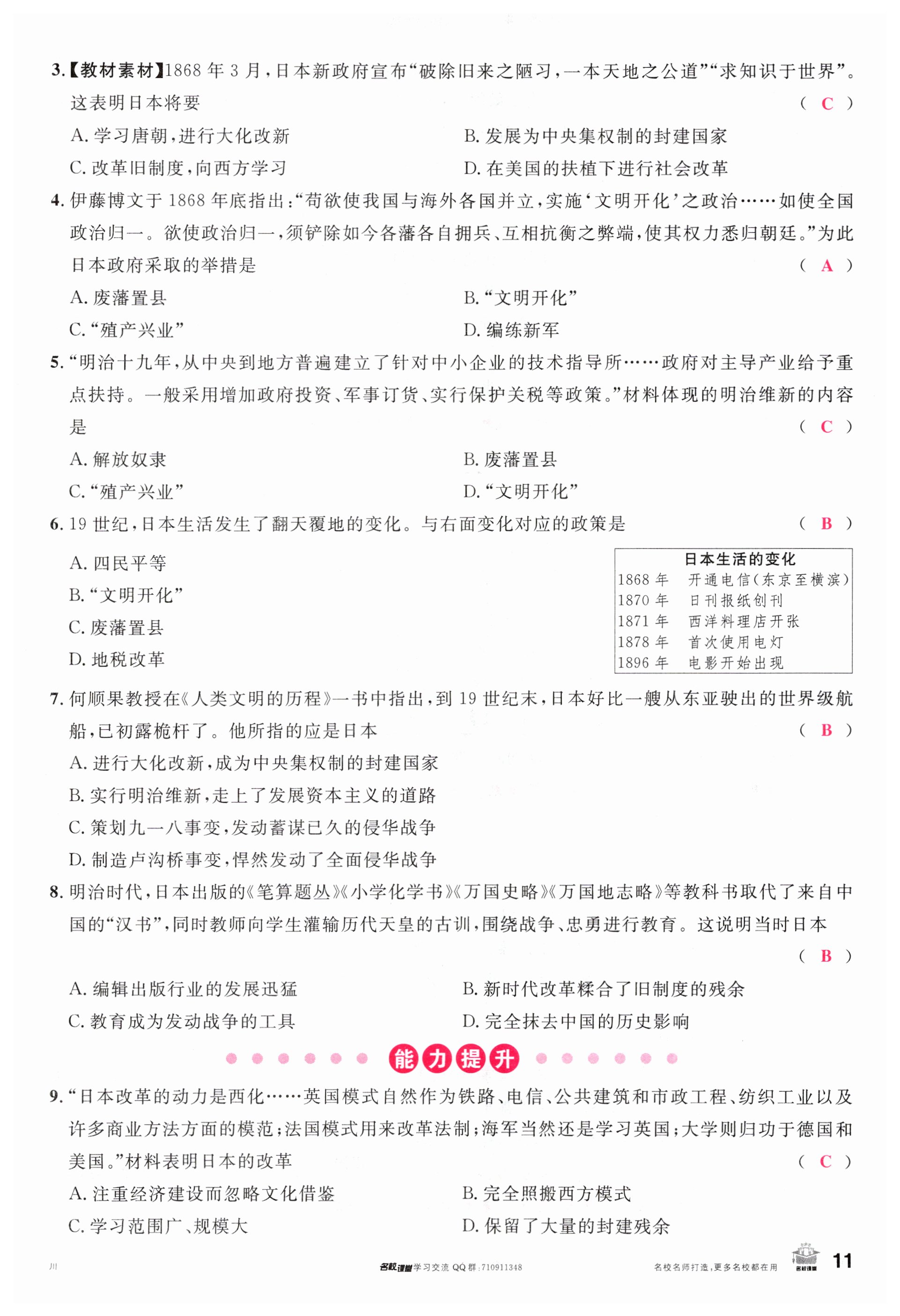 注:目前有些书本章节名称可能整理的还不是很完善,但都是按照顺序排列的,请同学们按照顺序仔细查找。练习册 2024年名校课堂九年级历史下册人教版四川专版 答案主要是用来给同学们做完题方便对答案用的,请勿直接抄袭。
