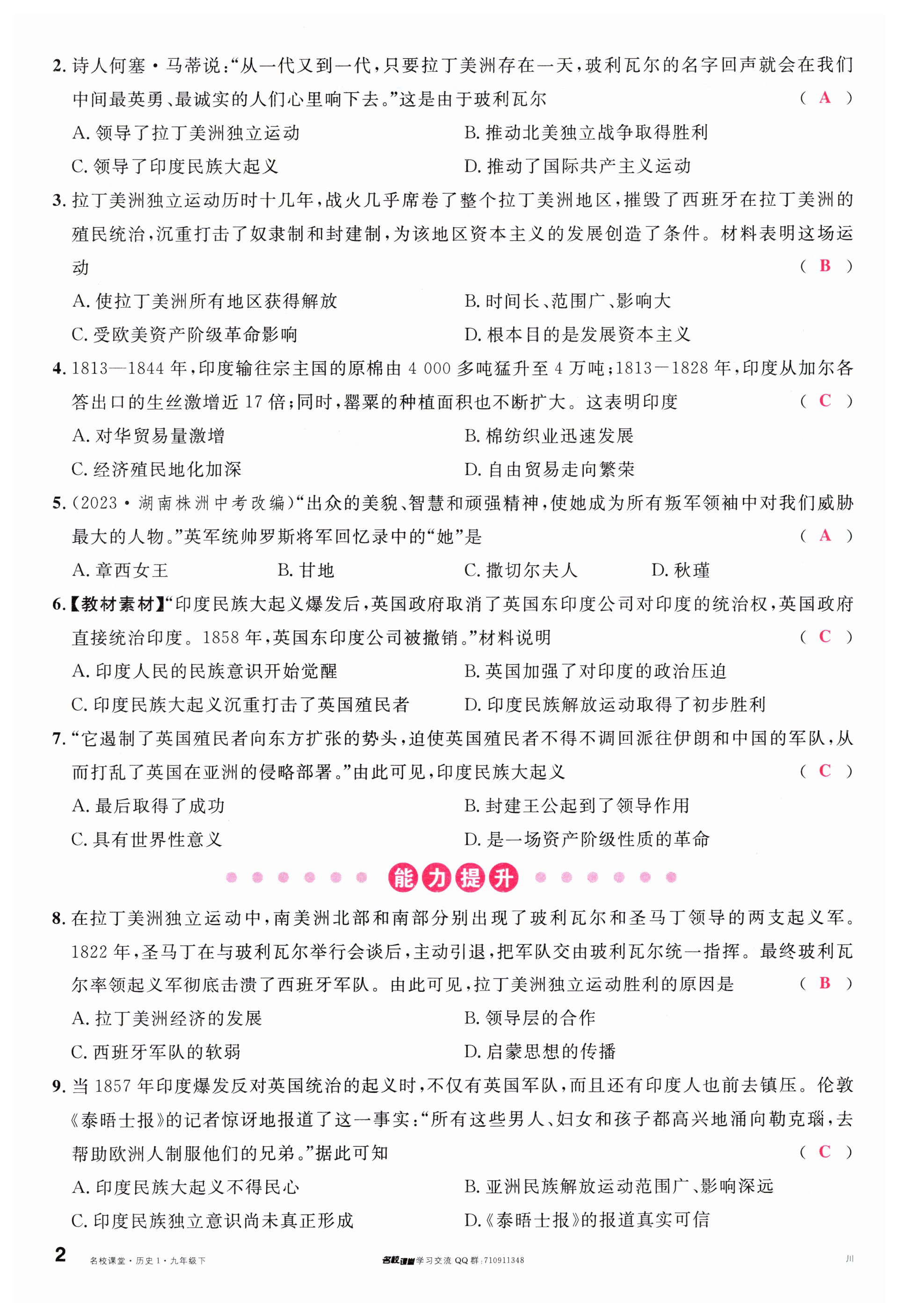 注:目前有些书本章节名称可能整理的还不是很完善,但都是按照顺序排列的,请同学们按照顺序仔细查找。练习册 2024年名校课堂九年级历史下册人教版四川专版 答案主要是用来给同学们做完题方便对答案用的,请勿直接抄袭。