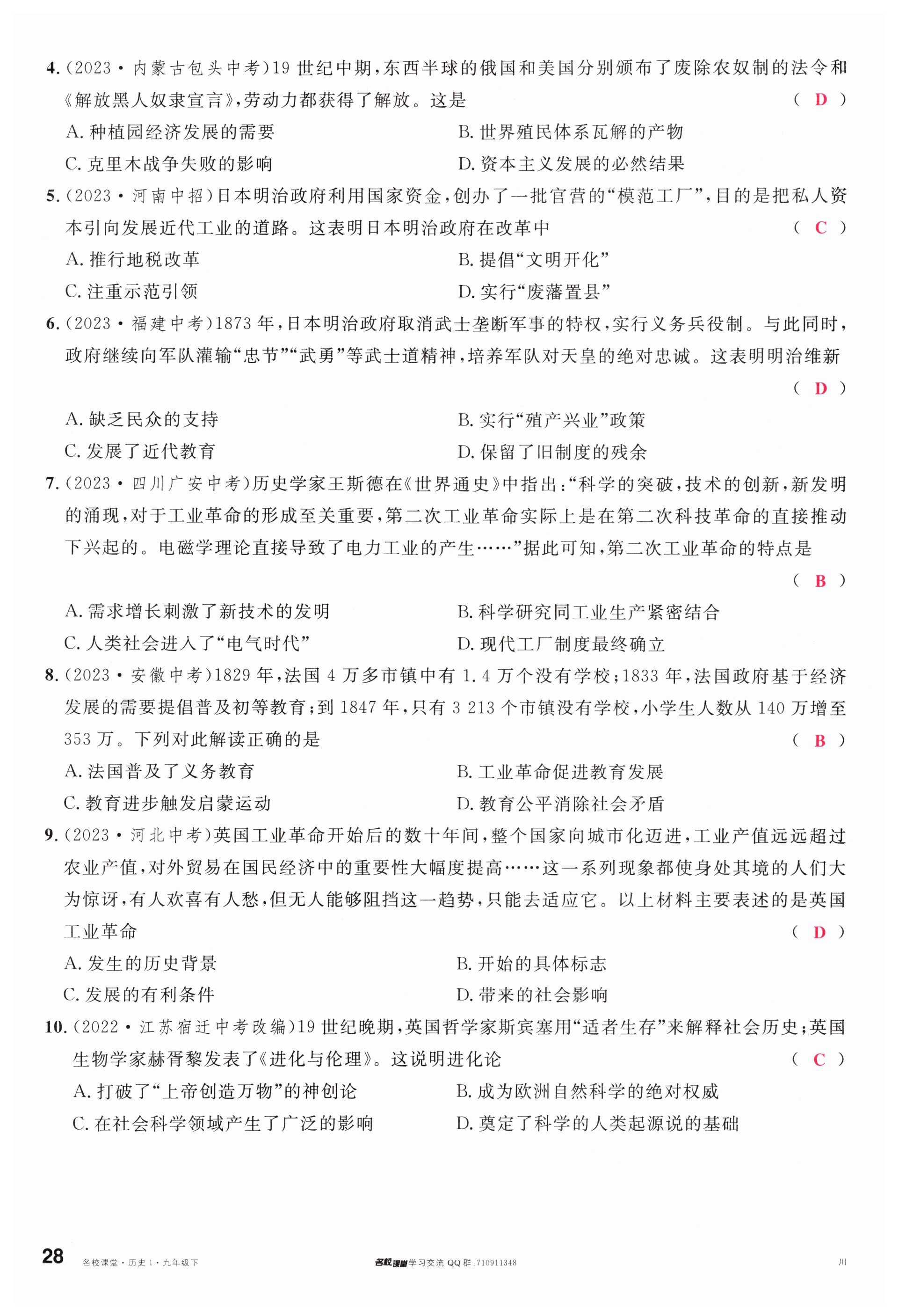 注:目前有些书本章节名称可能整理的还不是很完善,但都是按照顺序排列的,请同学们按照顺序仔细查找。练习册 2024年名校课堂九年级历史下册人教版四川专版 答案主要是用来给同学们做完题方便对答案用的,请勿直接抄袭。