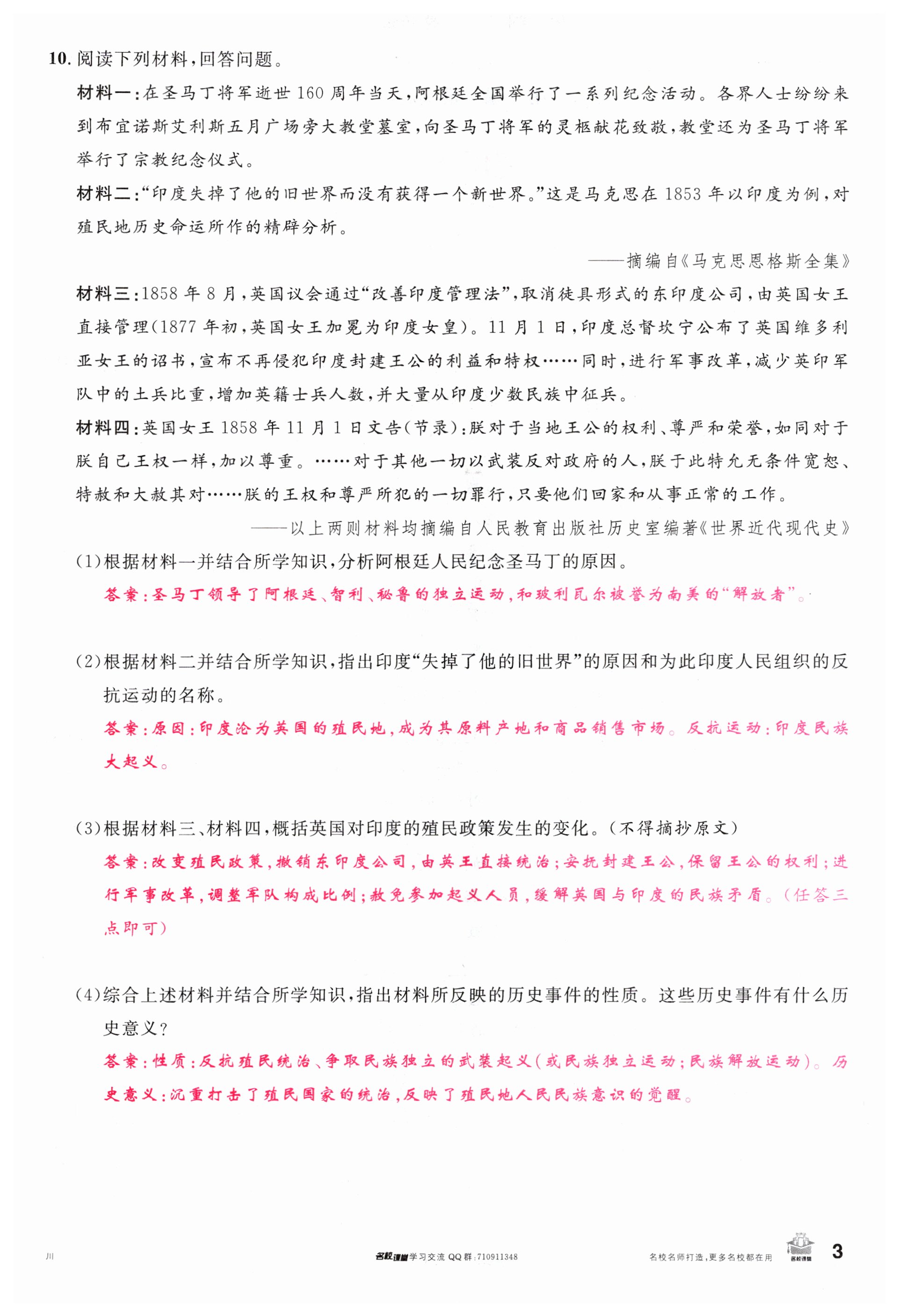 注:目前有些书本章节名称可能整理的还不是很完善,但都是按照顺序排列的,请同学们按照顺序仔细查找。练习册 2024年名校课堂九年级历史下册人教版四川专版 答案主要是用来给同学们做完题方便对答案用的,请勿直接抄袭。