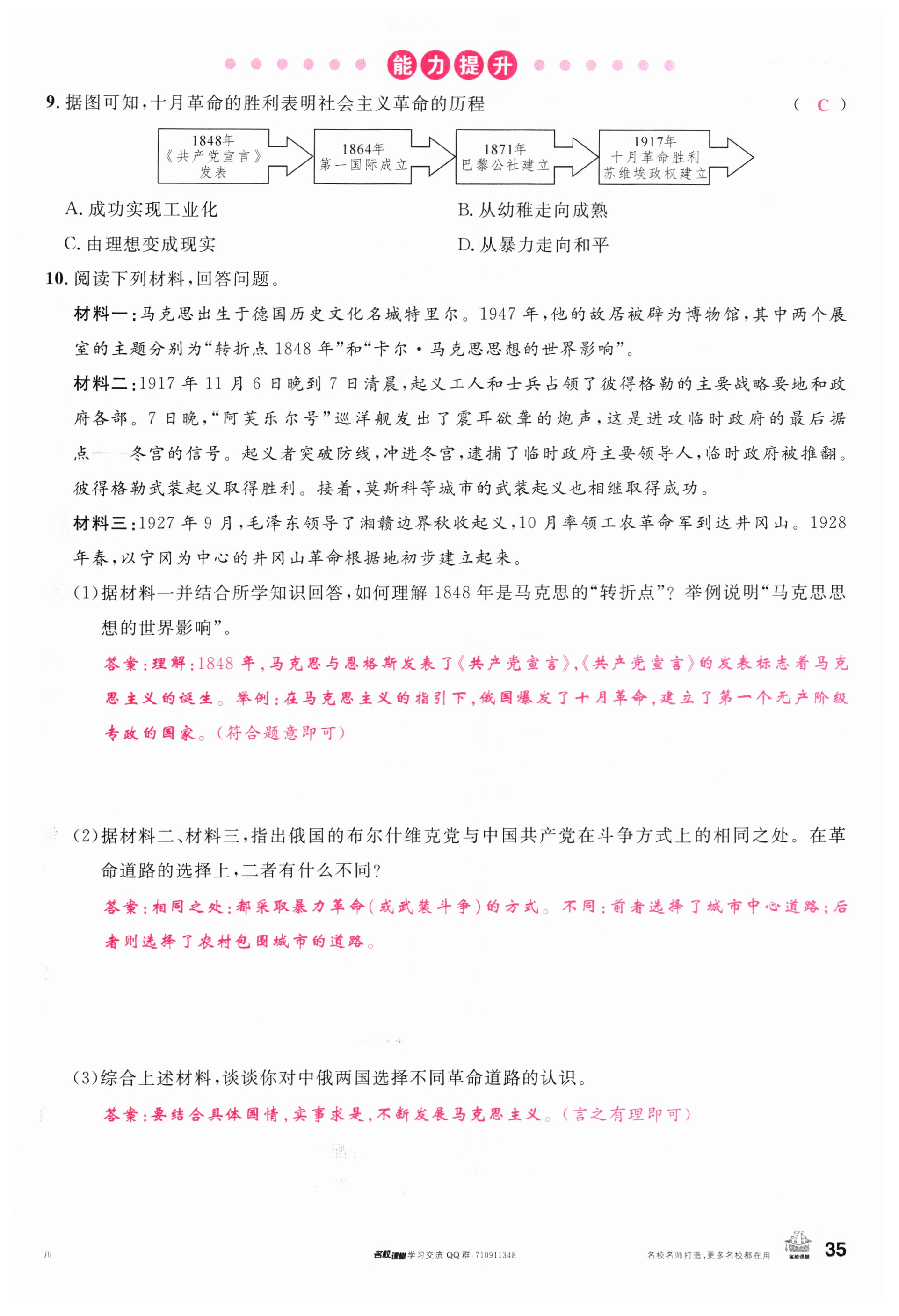 注:目前有些书本章节名称可能整理的还不是很完善,但都是按照顺序排列的,请同学们按照顺序仔细查找。练习册 2024年名校课堂九年级历史下册人教版四川专版 答案主要是用来给同学们做完题方便对答案用的,请勿直接抄袭。