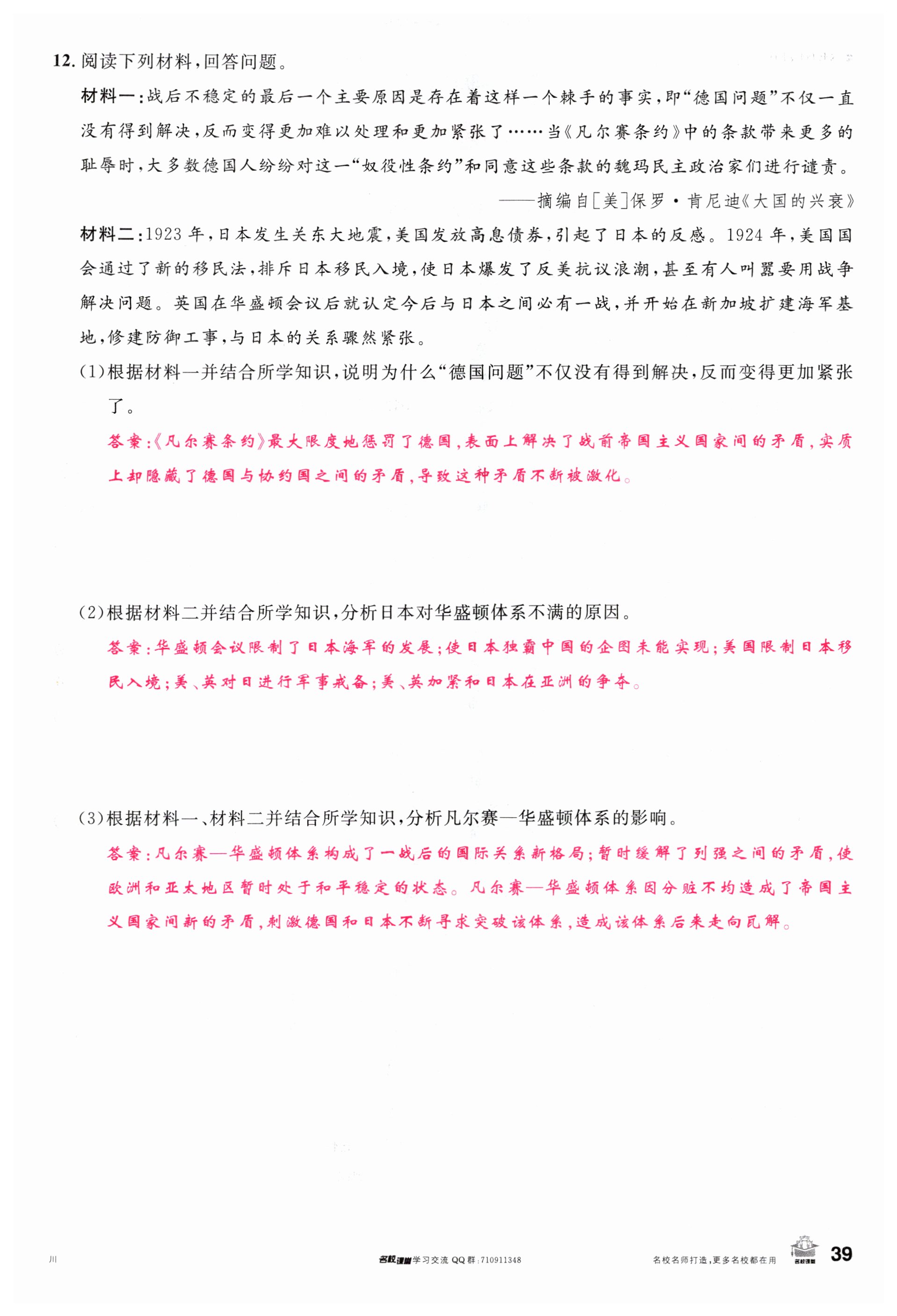 注:目前有些书本章节名称可能整理的还不是很完善,但都是按照顺序排列的,请同学们按照顺序仔细查找。练习册 2024年名校课堂九年级历史下册人教版四川专版 答案主要是用来给同学们做完题方便对答案用的,请勿直接抄袭。
