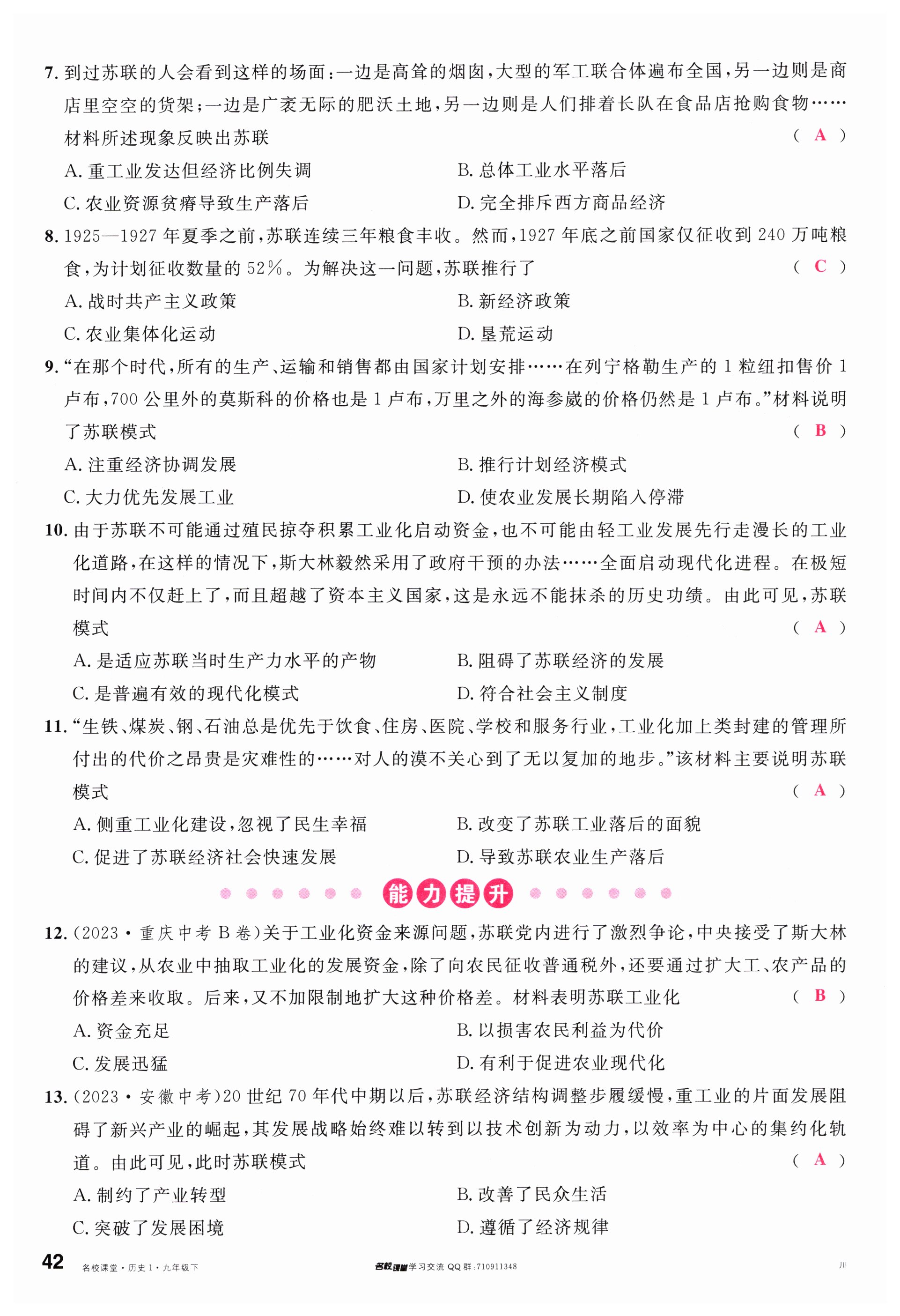 注:目前有些书本章节名称可能整理的还不是很完善,但都是按照顺序排列的,请同学们按照顺序仔细查找。练习册 2024年名校课堂九年级历史下册人教版四川专版 答案主要是用来给同学们做完题方便对答案用的,请勿直接抄袭。