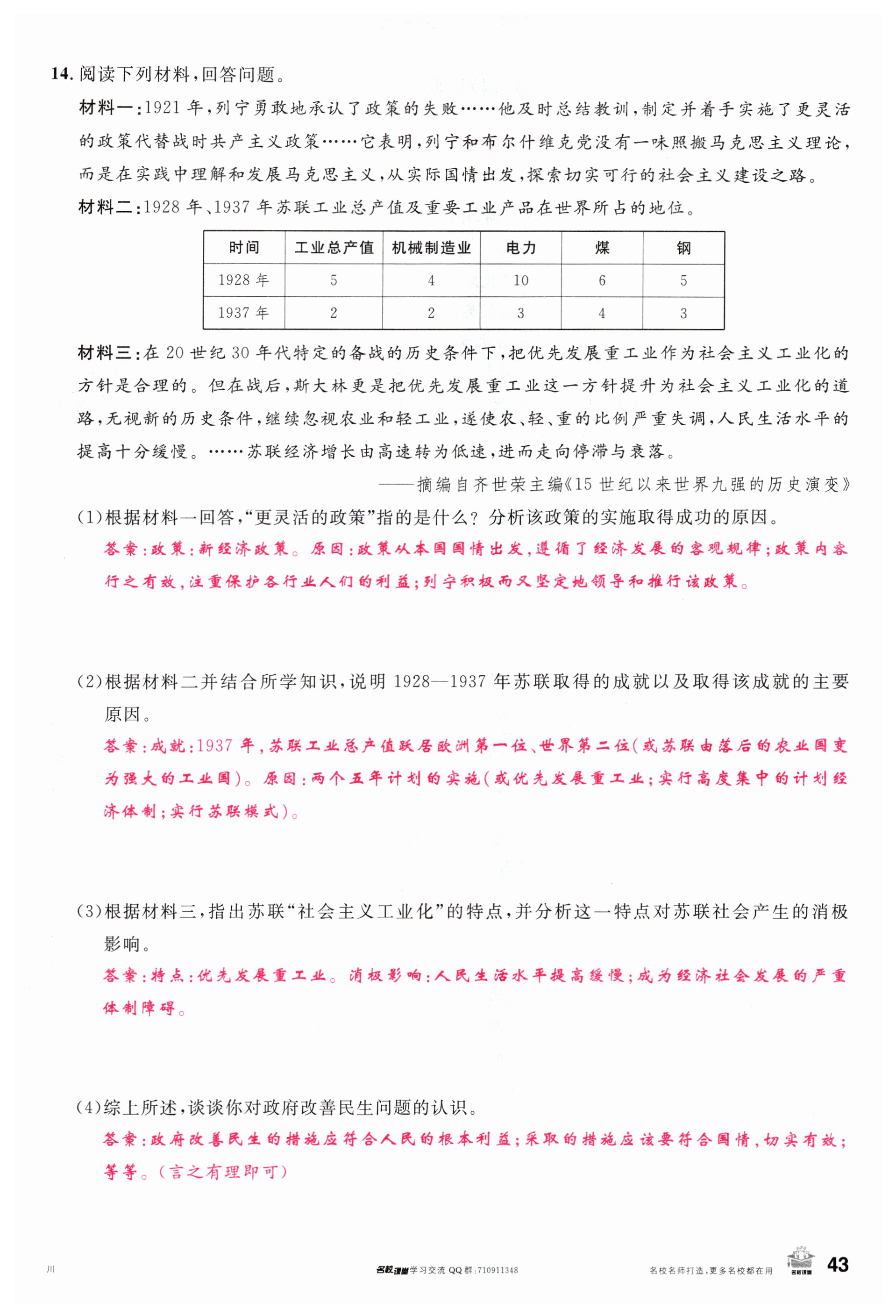 注:目前有些书本章节名称可能整理的还不是很完善,但都是按照顺序排列的,请同学们按照顺序仔细查找。练习册 2024年名校课堂九年级历史下册人教版四川专版 答案主要是用来给同学们做完题方便对答案用的,请勿直接抄袭。
