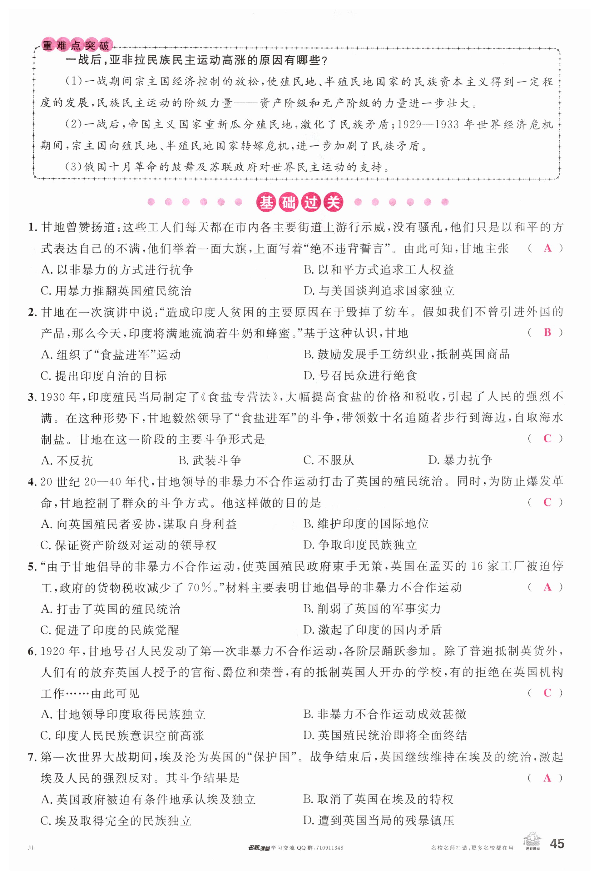 注:目前有些书本章节名称可能整理的还不是很完善,但都是按照顺序排列的,请同学们按照顺序仔细查找。练习册 2024年名校课堂九年级历史下册人教版四川专版 答案主要是用来给同学们做完题方便对答案用的,请勿直接抄袭。