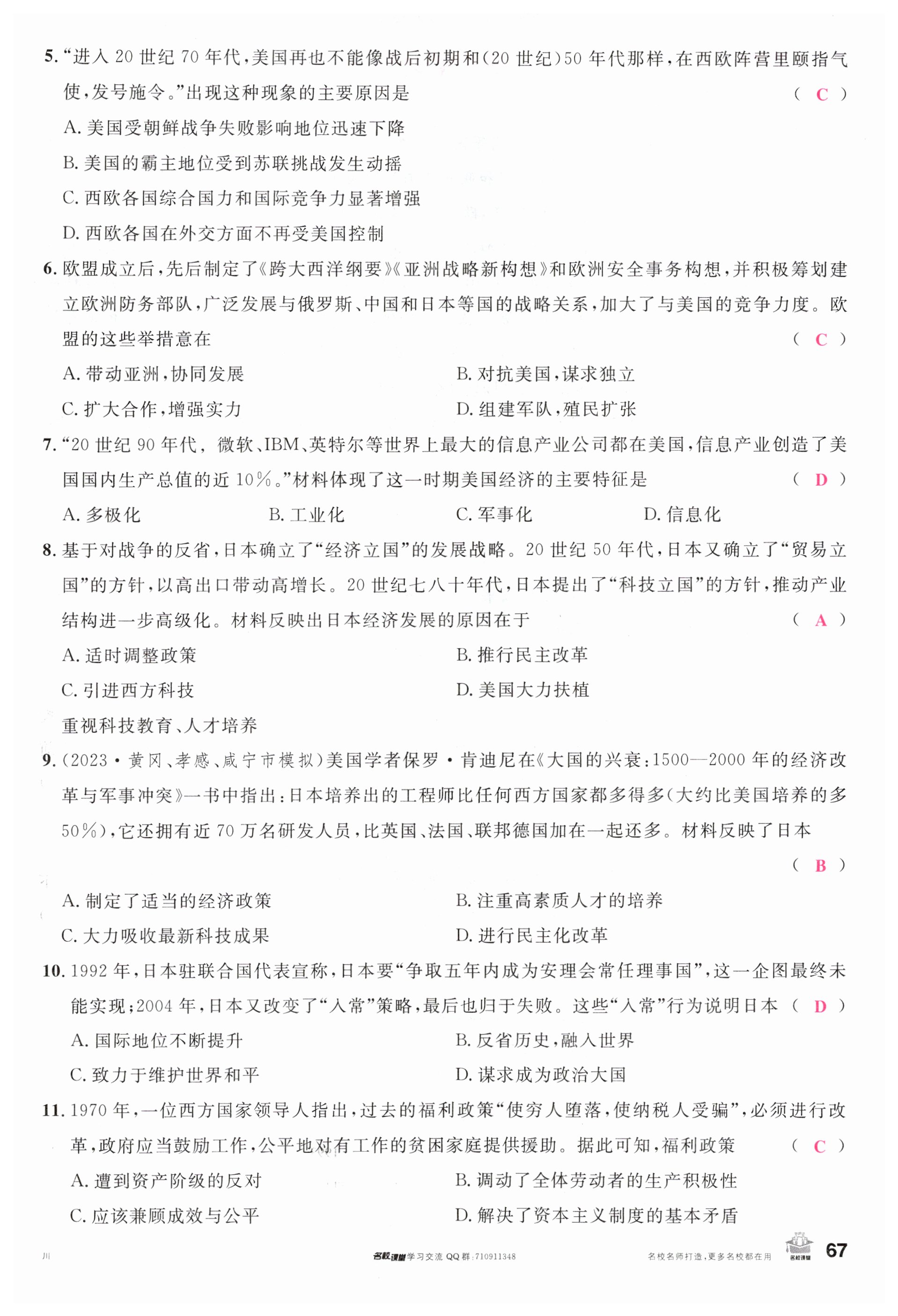 注:目前有些书本章节名称可能整理的还不是很完善,但都是按照顺序排列的,请同学们按照顺序仔细查找。练习册 2024年名校课堂九年级历史下册人教版四川专版 答案主要是用来给同学们做完题方便对答案用的,请勿直接抄袭。