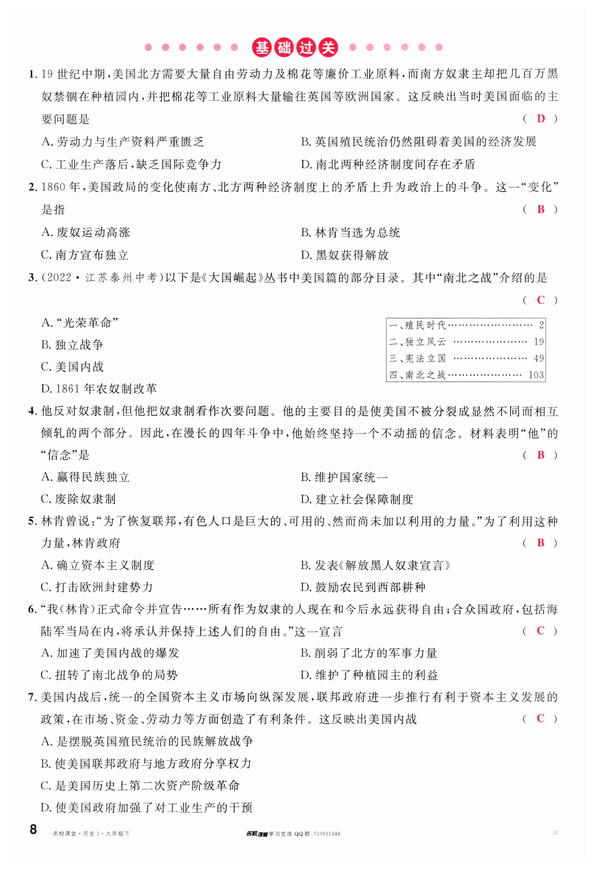 注:目前有些书本章节名称可能整理的还不是很完善,但都是按照顺序排列的,请同学们按照顺序仔细查找。练习册 2024年名校课堂九年级历史下册人教版四川专版 答案主要是用来给同学们做完题方便对答案用的,请勿直接抄袭。