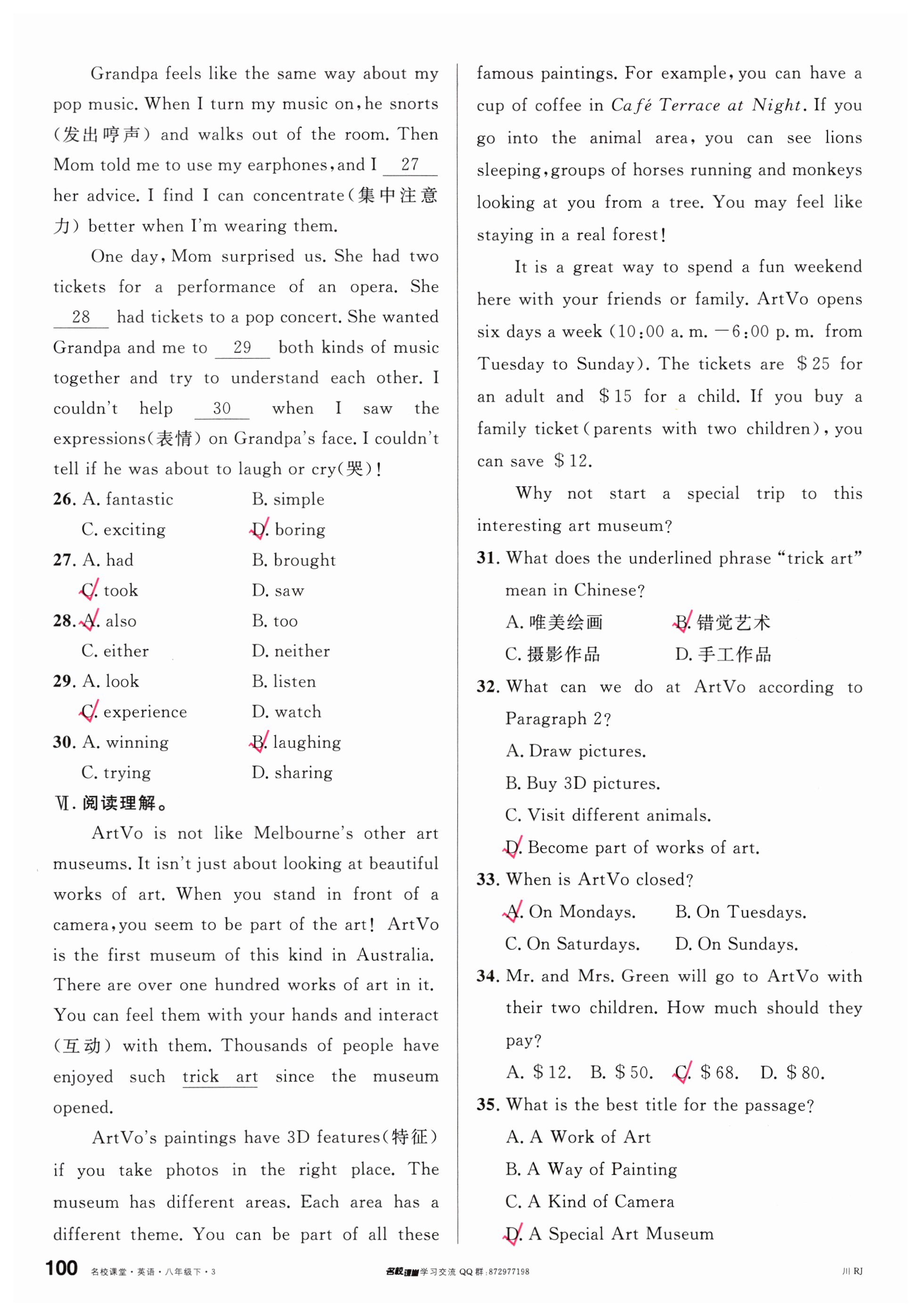 注:目前有些书本章节名称可能整理的还不是很完善,但都是按照顺序排列的,请同学们按照顺序仔细查找。练习册 2024年名校课堂八年级英语下册人教版四川专版 答案主要是用来给同学们做完题方便对答案用的,请勿直接抄袭。
