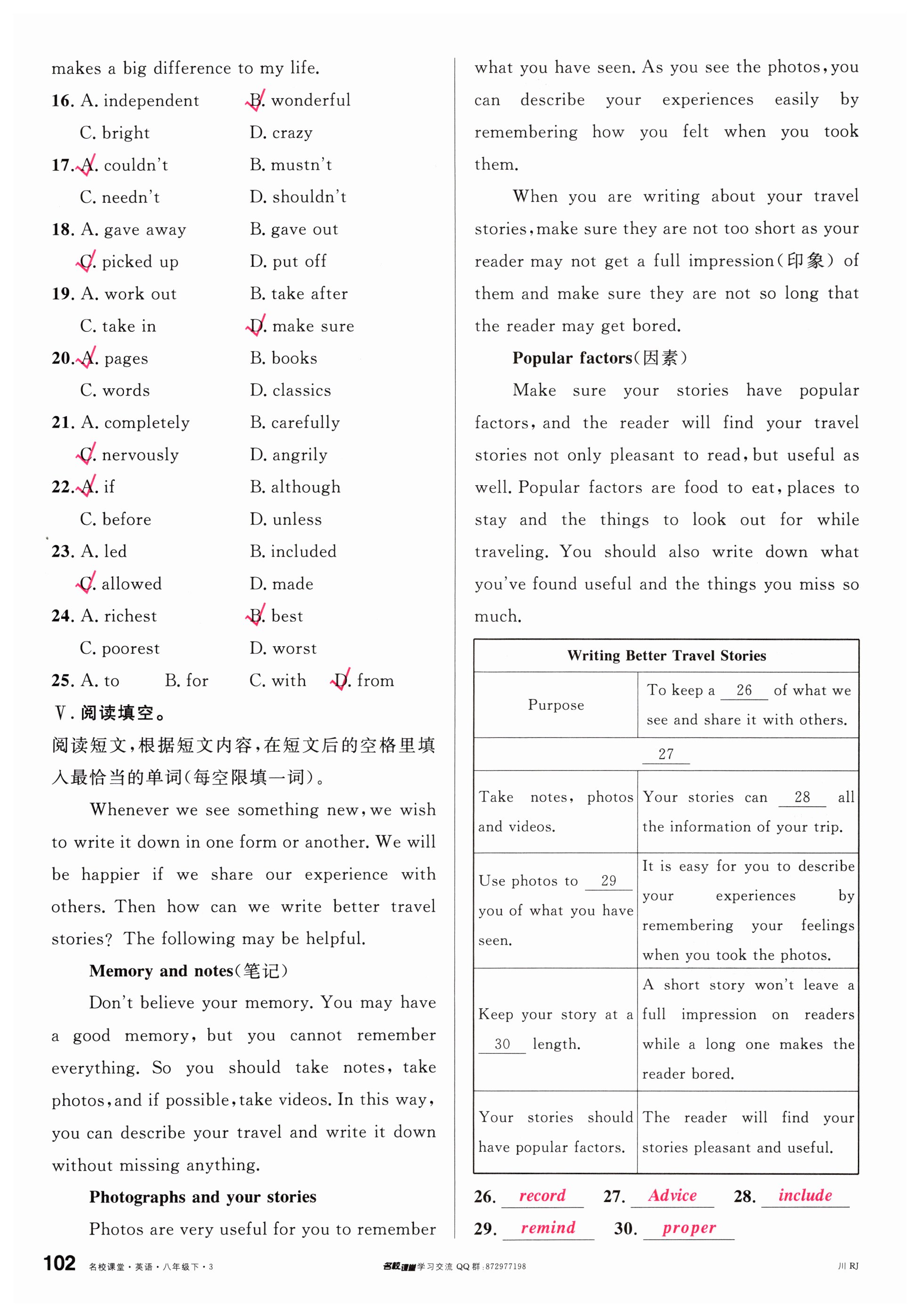 注:目前有些书本章节名称可能整理的还不是很完善,但都是按照顺序排列的,请同学们按照顺序仔细查找。练习册 2024年名校课堂八年级英语下册人教版四川专版 答案主要是用来给同学们做完题方便对答案用的,请勿直接抄袭。
