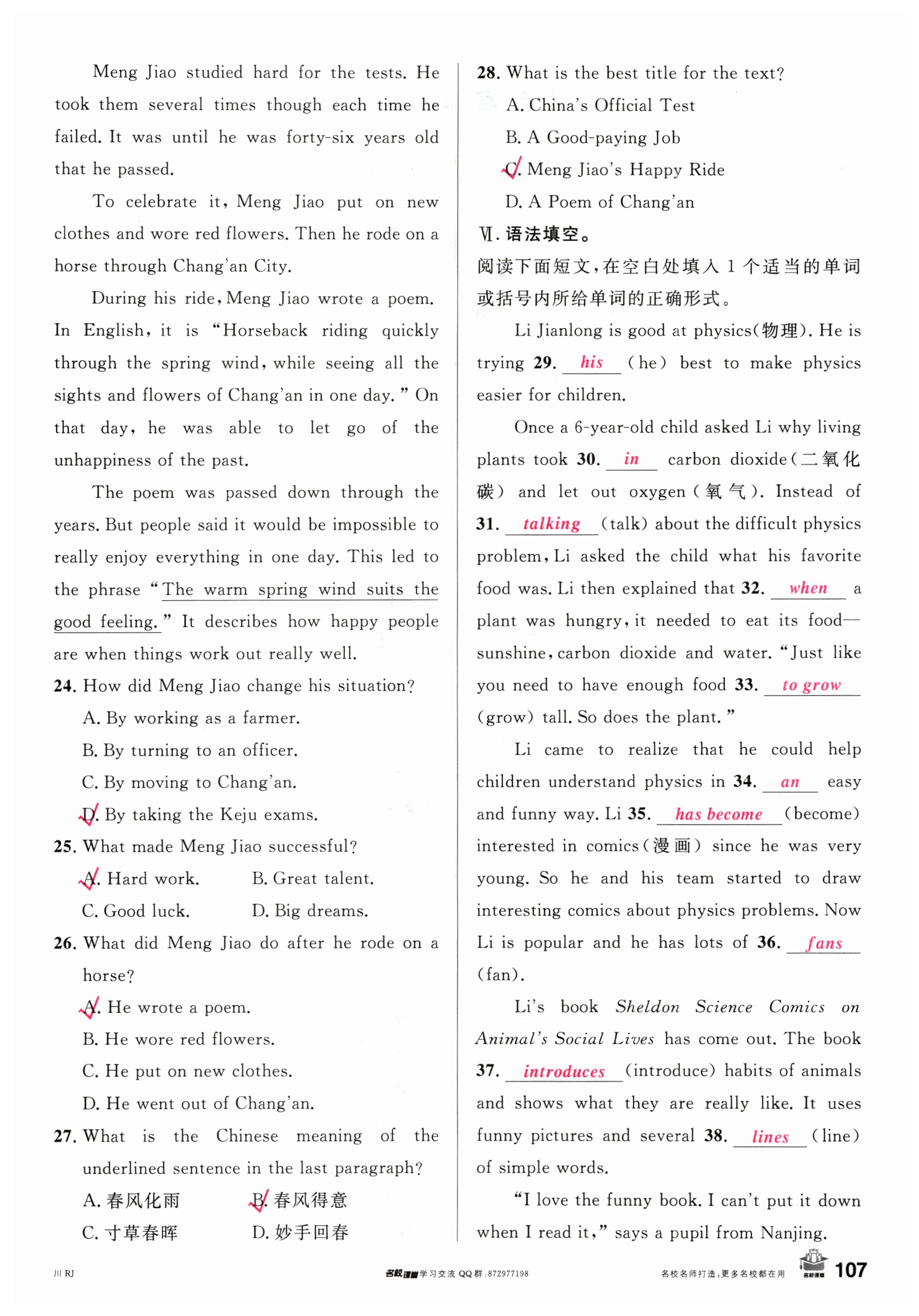 注:目前有些书本章节名称可能整理的还不是很完善,但都是按照顺序排列的,请同学们按照顺序仔细查找。练习册 2024年名校课堂八年级英语下册人教版四川专版 答案主要是用来给同学们做完题方便对答案用的,请勿直接抄袭。