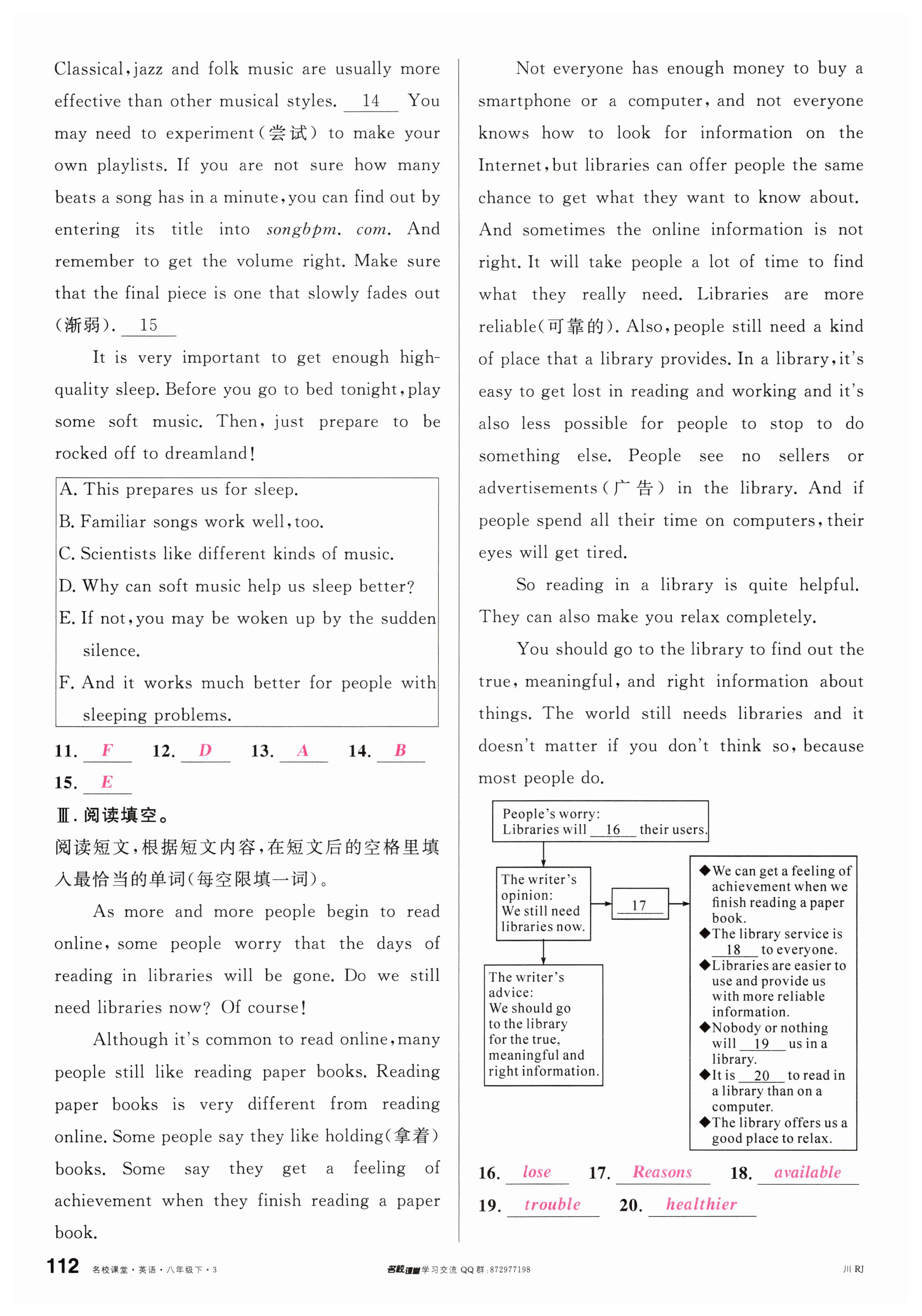 注:目前有些书本章节名称可能整理的还不是很完善,但都是按照顺序排列的,请同学们按照顺序仔细查找。练习册 2024年名校课堂八年级英语下册人教版四川专版 答案主要是用来给同学们做完题方便对答案用的,请勿直接抄袭。