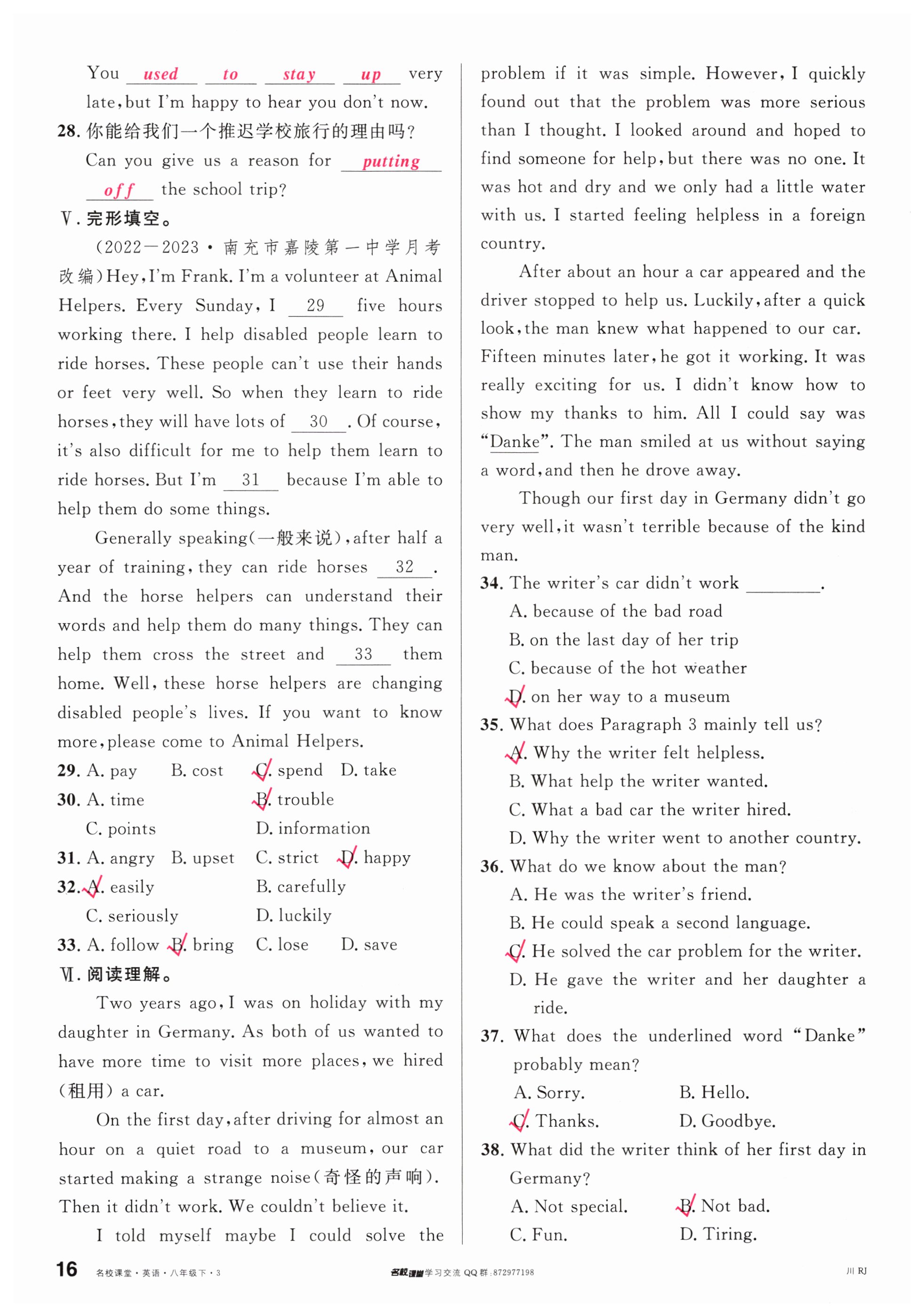 注:目前有些书本章节名称可能整理的还不是很完善,但都是按照顺序排列的,请同学们按照顺序仔细查找。练习册 2024年名校课堂八年级英语下册人教版四川专版 答案主要是用来给同学们做完题方便对答案用的,请勿直接抄袭。