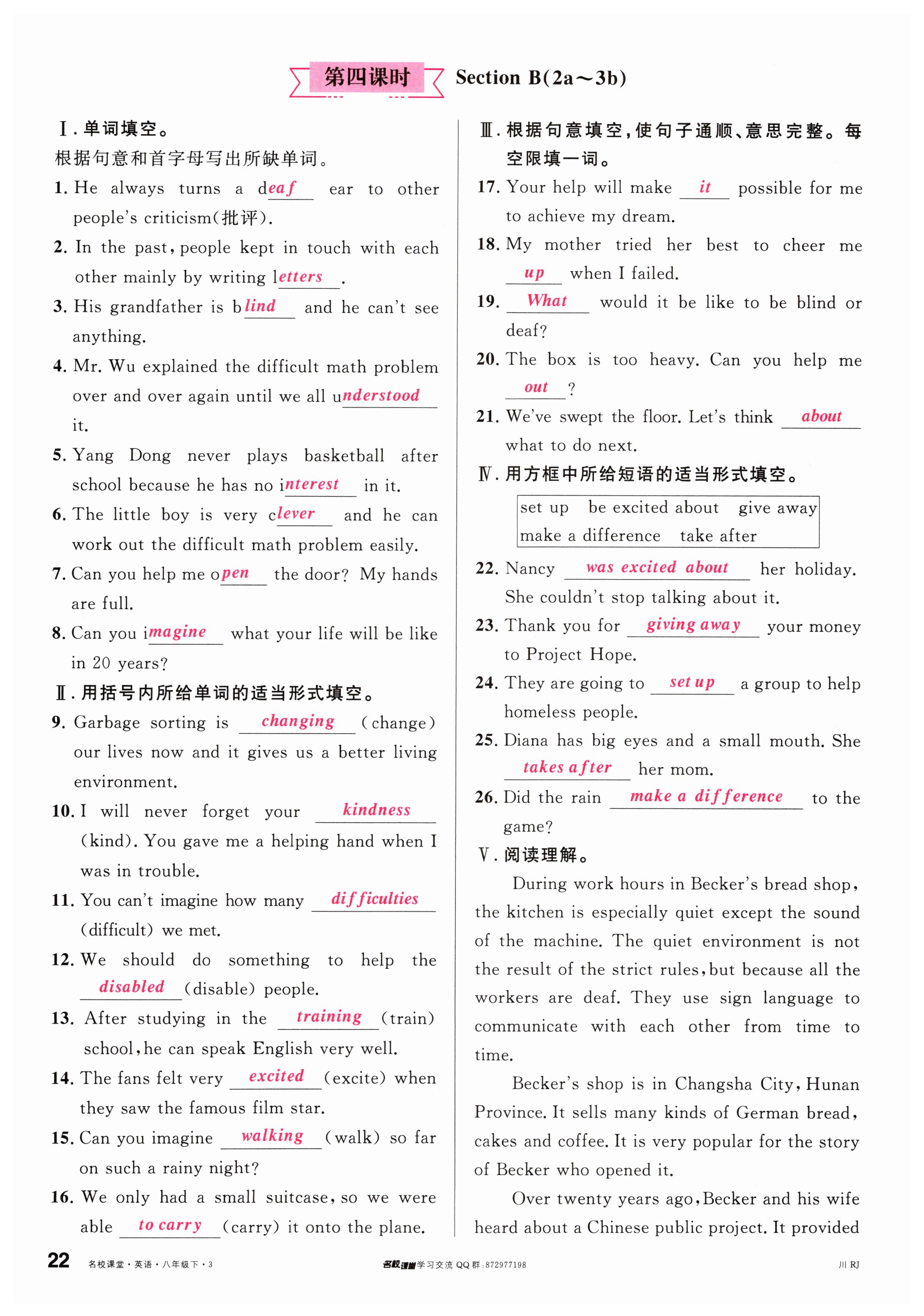 注:目前有些书本章节名称可能整理的还不是很完善,但都是按照顺序排列的,请同学们按照顺序仔细查找。练习册 2024年名校课堂八年级英语下册人教版四川专版 答案主要是用来给同学们做完题方便对答案用的,请勿直接抄袭。