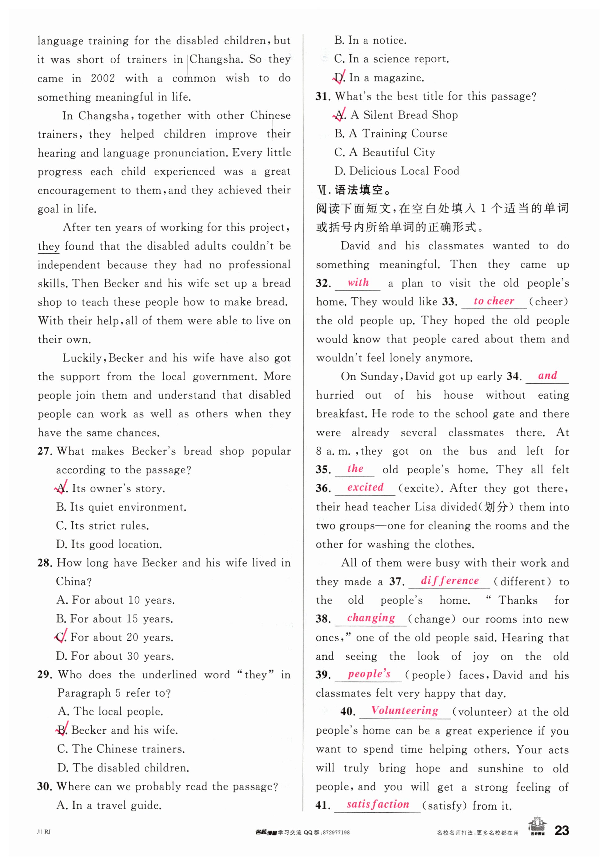 注:目前有些书本章节名称可能整理的还不是很完善,但都是按照顺序排列的,请同学们按照顺序仔细查找。练习册 2024年名校课堂八年级英语下册人教版四川专版 答案主要是用来给同学们做完题方便对答案用的,请勿直接抄袭。