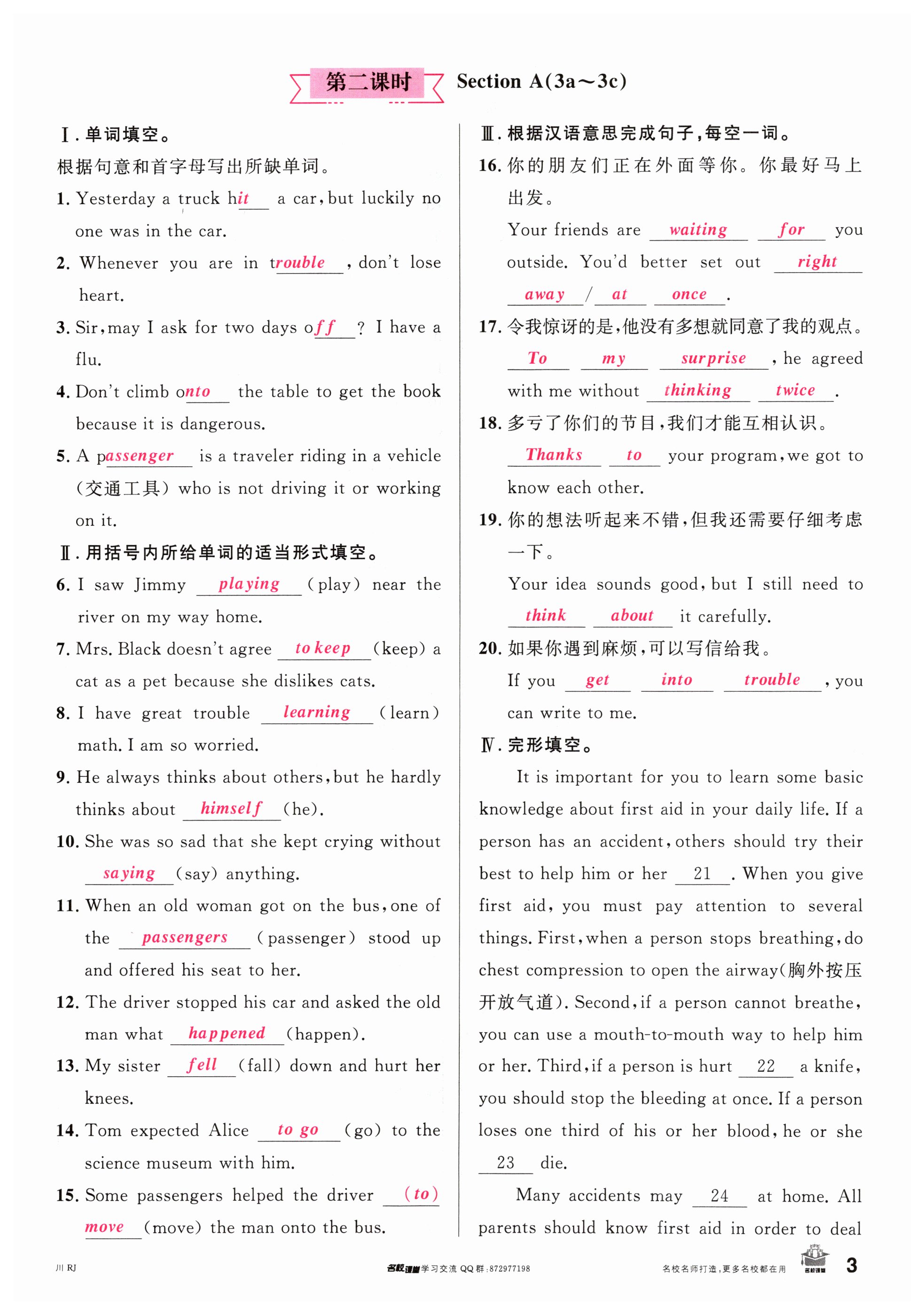 注:目前有些书本章节名称可能整理的还不是很完善,但都是按照顺序排列的,请同学们按照顺序仔细查找。练习册 2024年名校课堂八年级英语下册人教版四川专版 答案主要是用来给同学们做完题方便对答案用的,请勿直接抄袭。