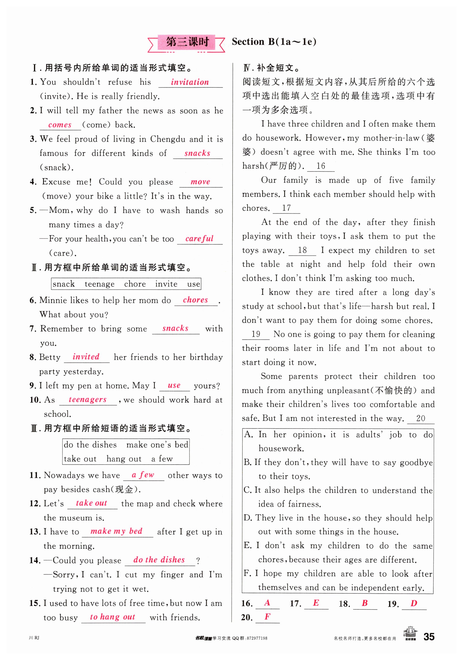 注:目前有些书本章节名称可能整理的还不是很完善,但都是按照顺序排列的,请同学们按照顺序仔细查找。练习册 2024年名校课堂八年级英语下册人教版四川专版 答案主要是用来给同学们做完题方便对答案用的,请勿直接抄袭。
