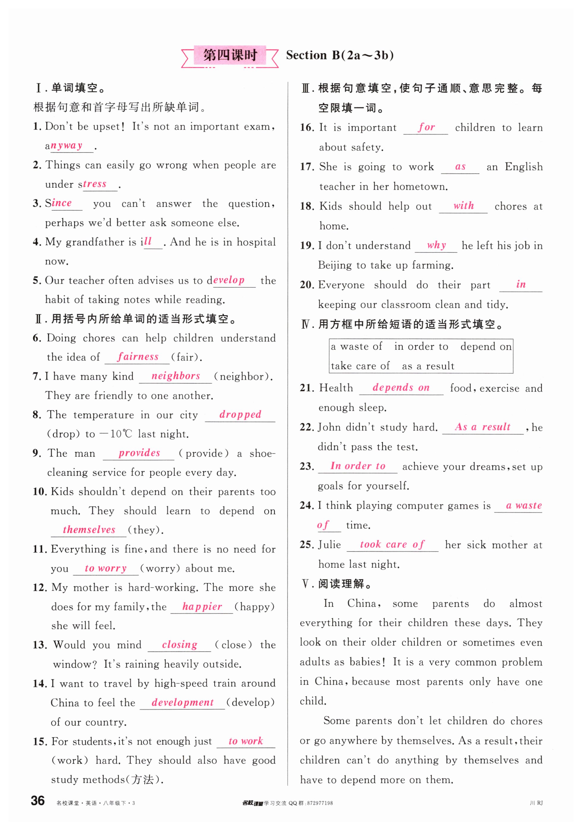 注:目前有些书本章节名称可能整理的还不是很完善,但都是按照顺序排列的,请同学们按照顺序仔细查找。练习册 2024年名校课堂八年级英语下册人教版四川专版 答案主要是用来给同学们做完题方便对答案用的,请勿直接抄袭。
