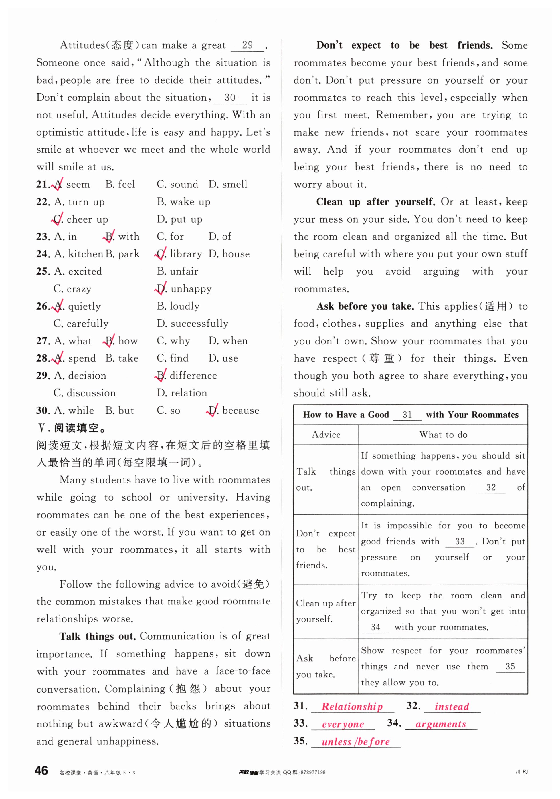 注:目前有些书本章节名称可能整理的还不是很完善,但都是按照顺序排列的,请同学们按照顺序仔细查找。练习册 2024年名校课堂八年级英语下册人教版四川专版 答案主要是用来给同学们做完题方便对答案用的,请勿直接抄袭。