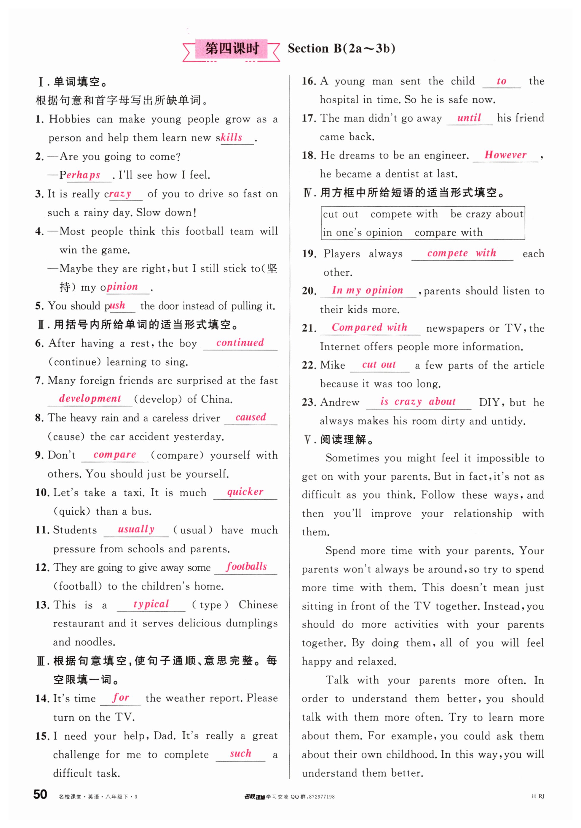 注:目前有些书本章节名称可能整理的还不是很完善,但都是按照顺序排列的,请同学们按照顺序仔细查找。练习册 2024年名校课堂八年级英语下册人教版四川专版 答案主要是用来给同学们做完题方便对答案用的,请勿直接抄袭。