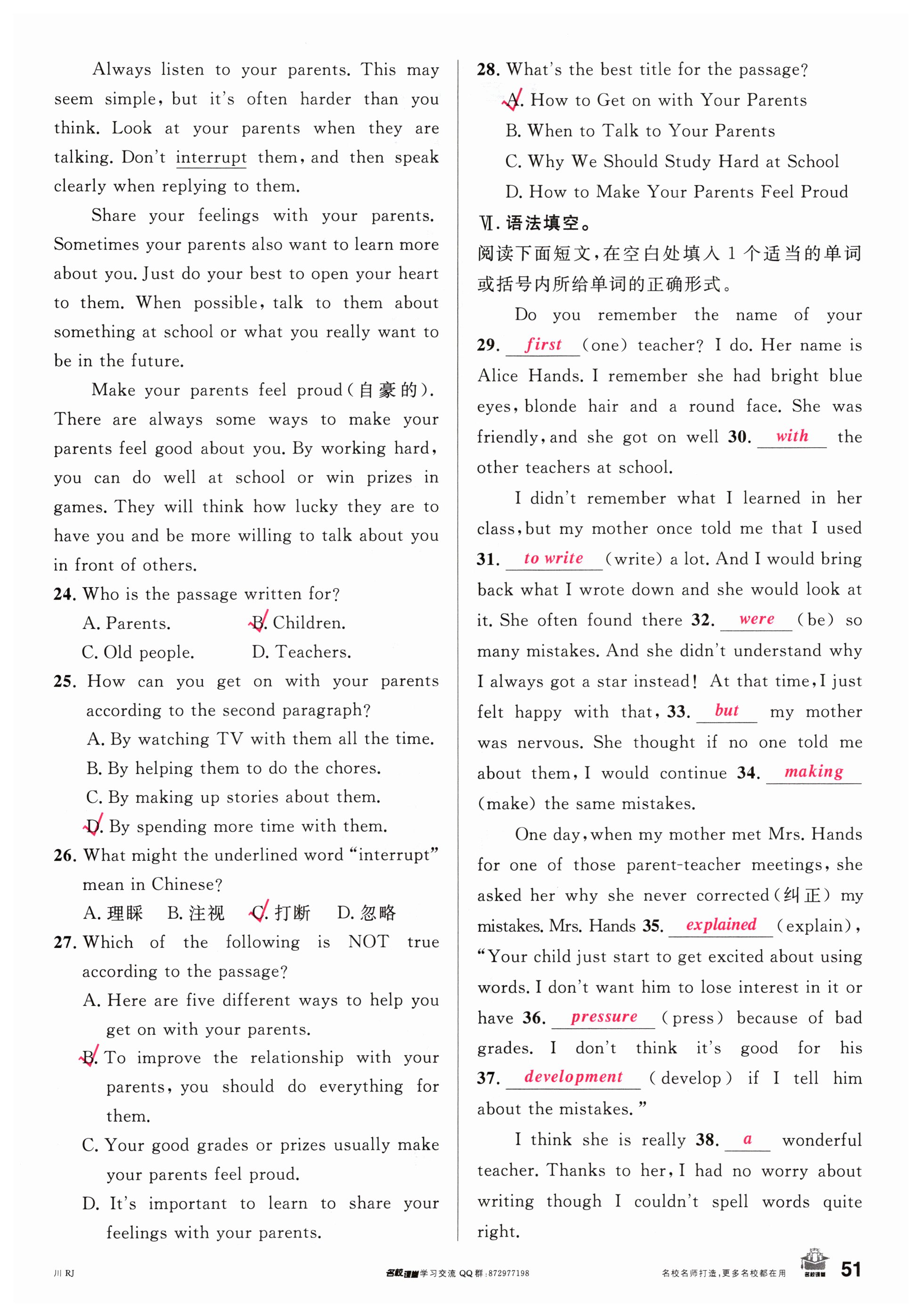 注:目前有些书本章节名称可能整理的还不是很完善,但都是按照顺序排列的,请同学们按照顺序仔细查找。练习册 2024年名校课堂八年级英语下册人教版四川专版 答案主要是用来给同学们做完题方便对答案用的,请勿直接抄袭。