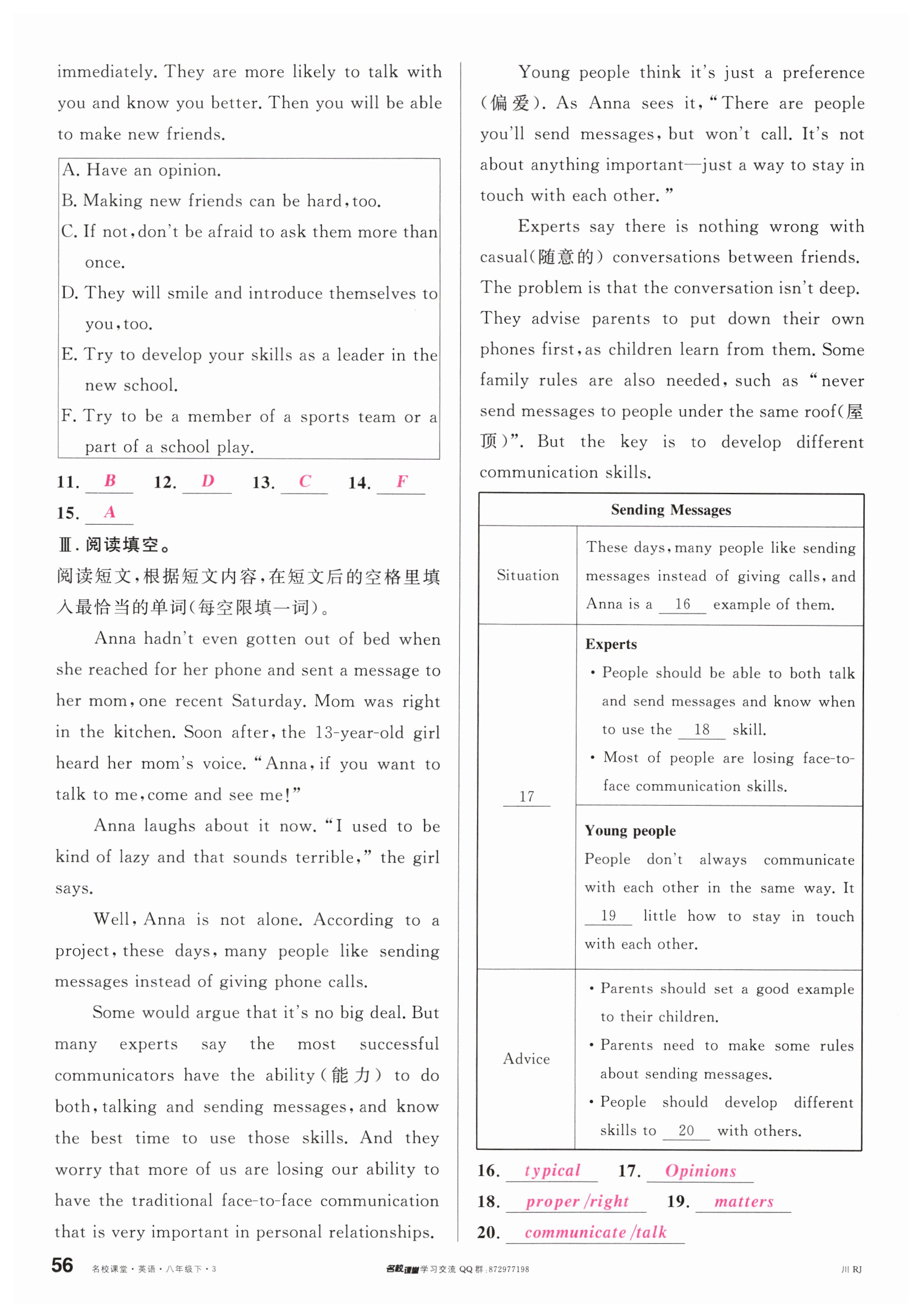 注:目前有些书本章节名称可能整理的还不是很完善,但都是按照顺序排列的,请同学们按照顺序仔细查找。练习册 2024年名校课堂八年级英语下册人教版四川专版 答案主要是用来给同学们做完题方便对答案用的,请勿直接抄袭。