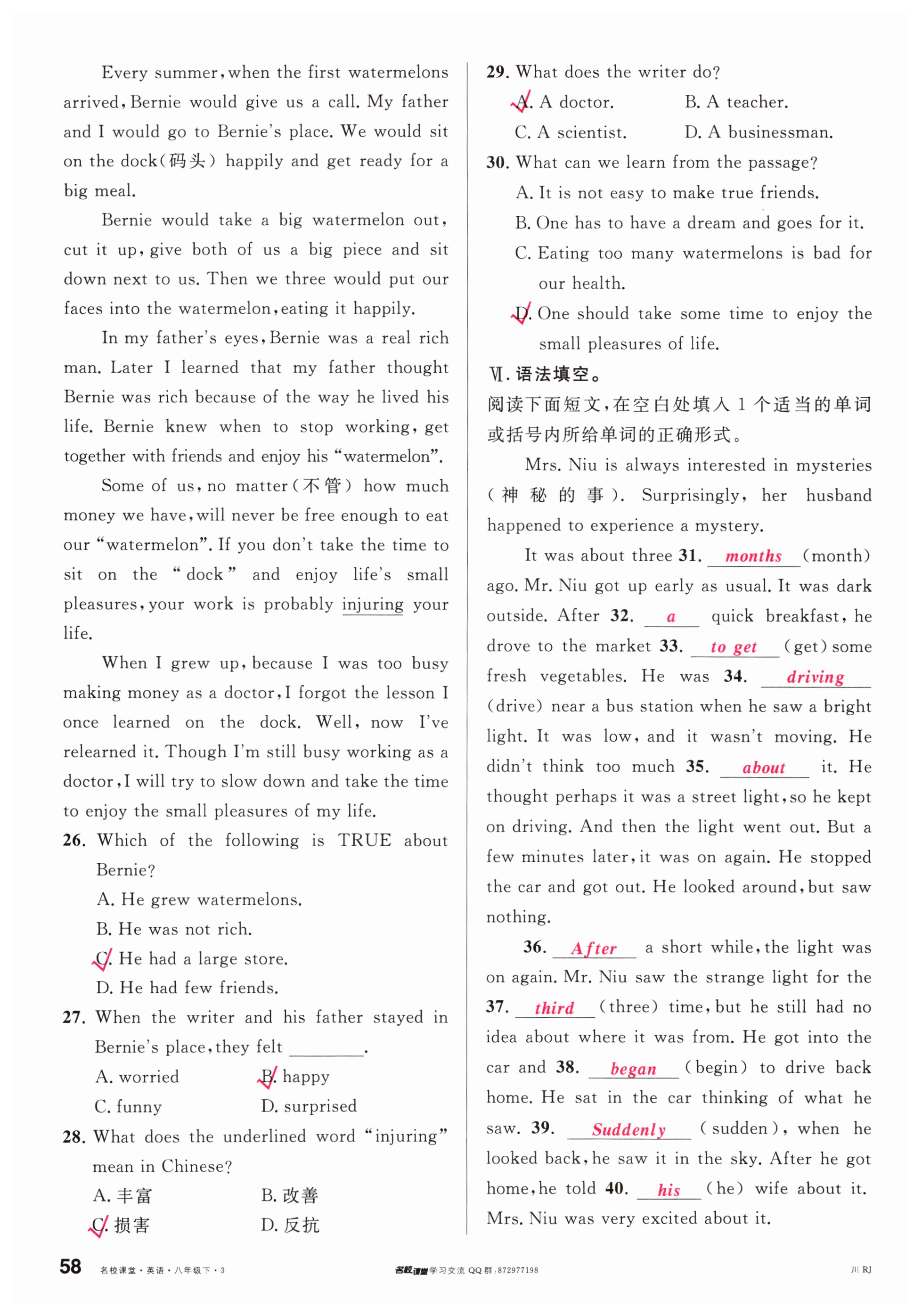 注:目前有些书本章节名称可能整理的还不是很完善,但都是按照顺序排列的,请同学们按照顺序仔细查找。练习册 2024年名校课堂八年级英语下册人教版四川专版 答案主要是用来给同学们做完题方便对答案用的,请勿直接抄袭。