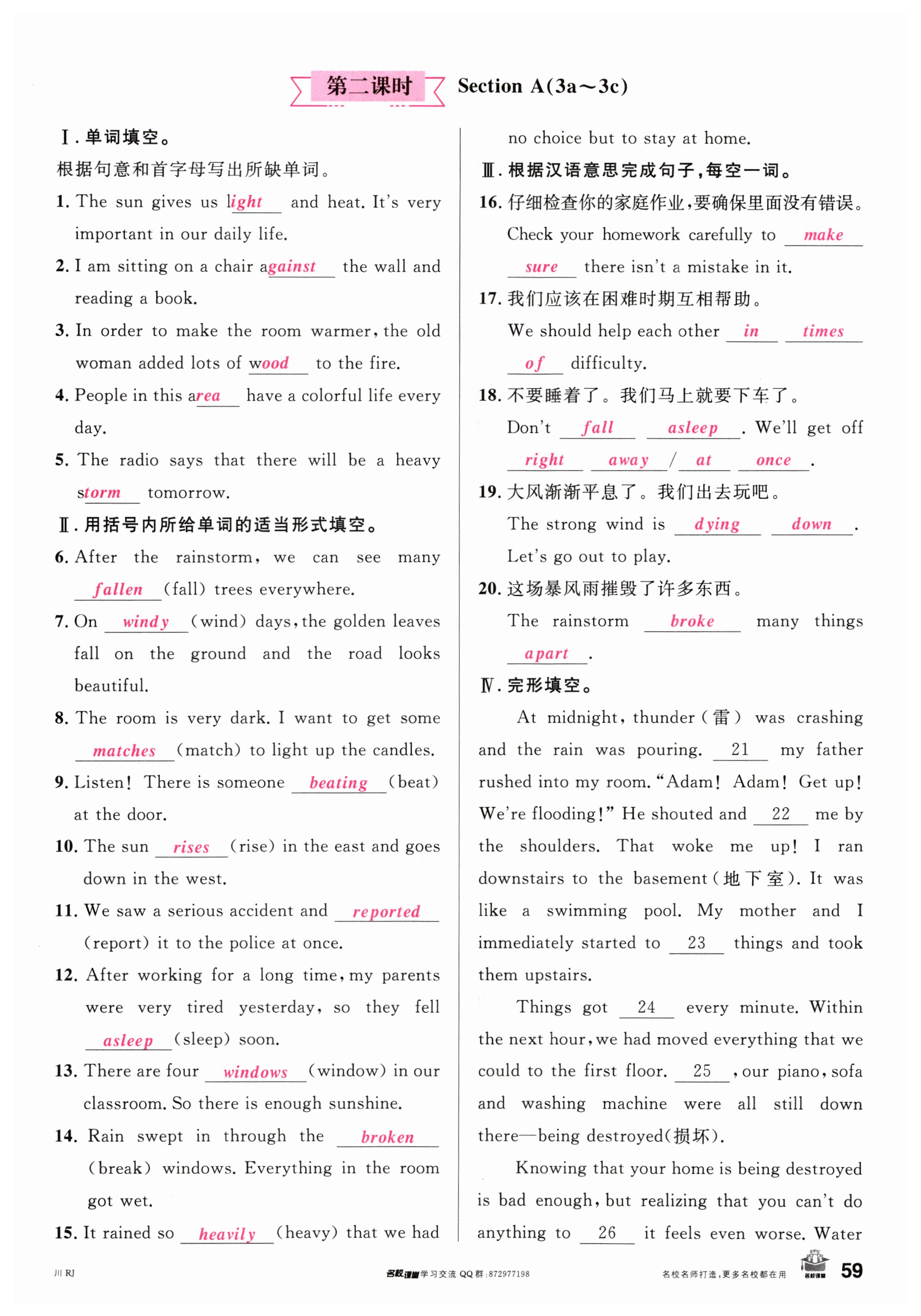 注:目前有些书本章节名称可能整理的还不是很完善,但都是按照顺序排列的,请同学们按照顺序仔细查找。练习册 2024年名校课堂八年级英语下册人教版四川专版 答案主要是用来给同学们做完题方便对答案用的,请勿直接抄袭。