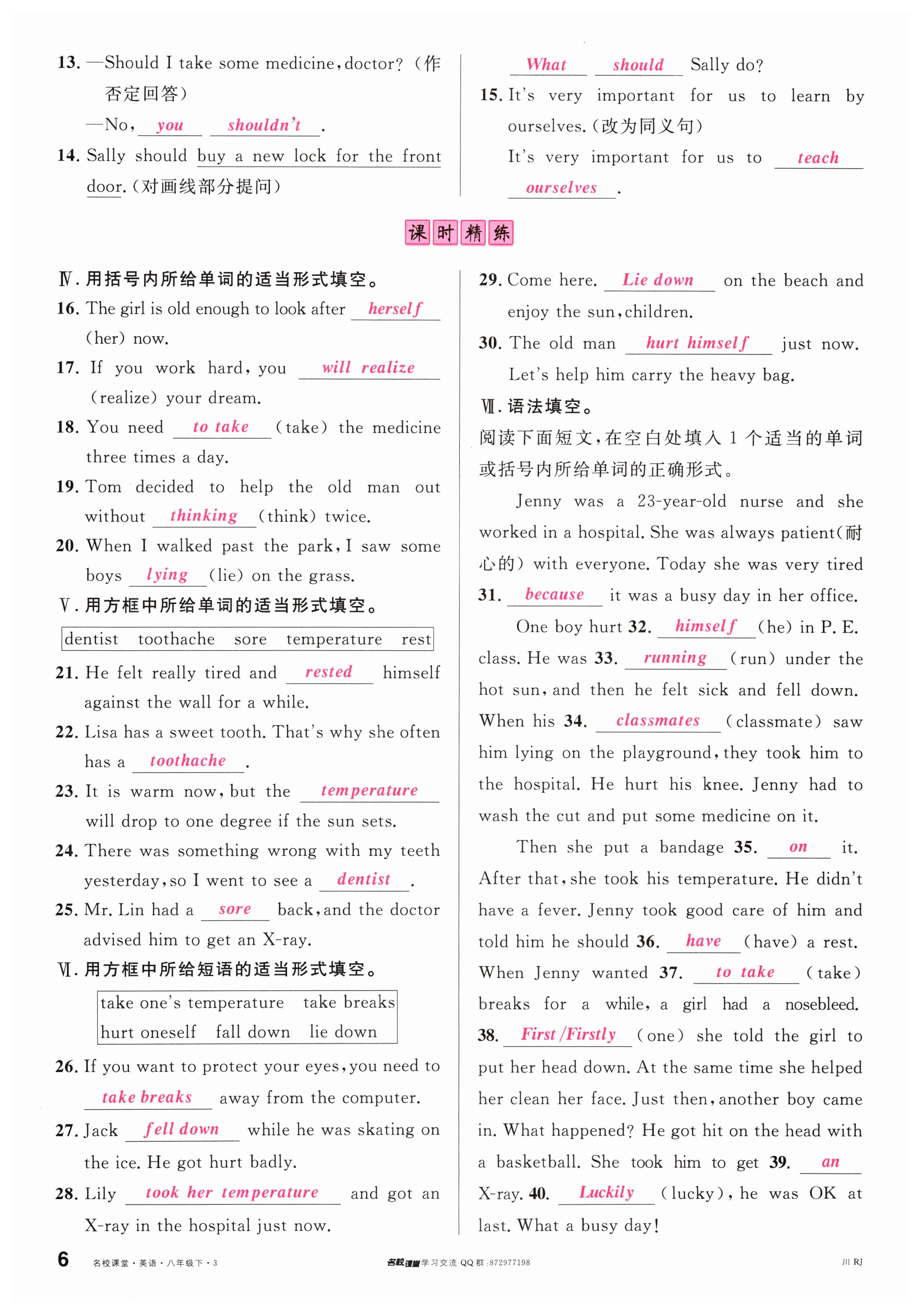 注:目前有些书本章节名称可能整理的还不是很完善,但都是按照顺序排列的,请同学们按照顺序仔细查找。练习册 2024年名校课堂八年级英语下册人教版四川专版 答案主要是用来给同学们做完题方便对答案用的,请勿直接抄袭。