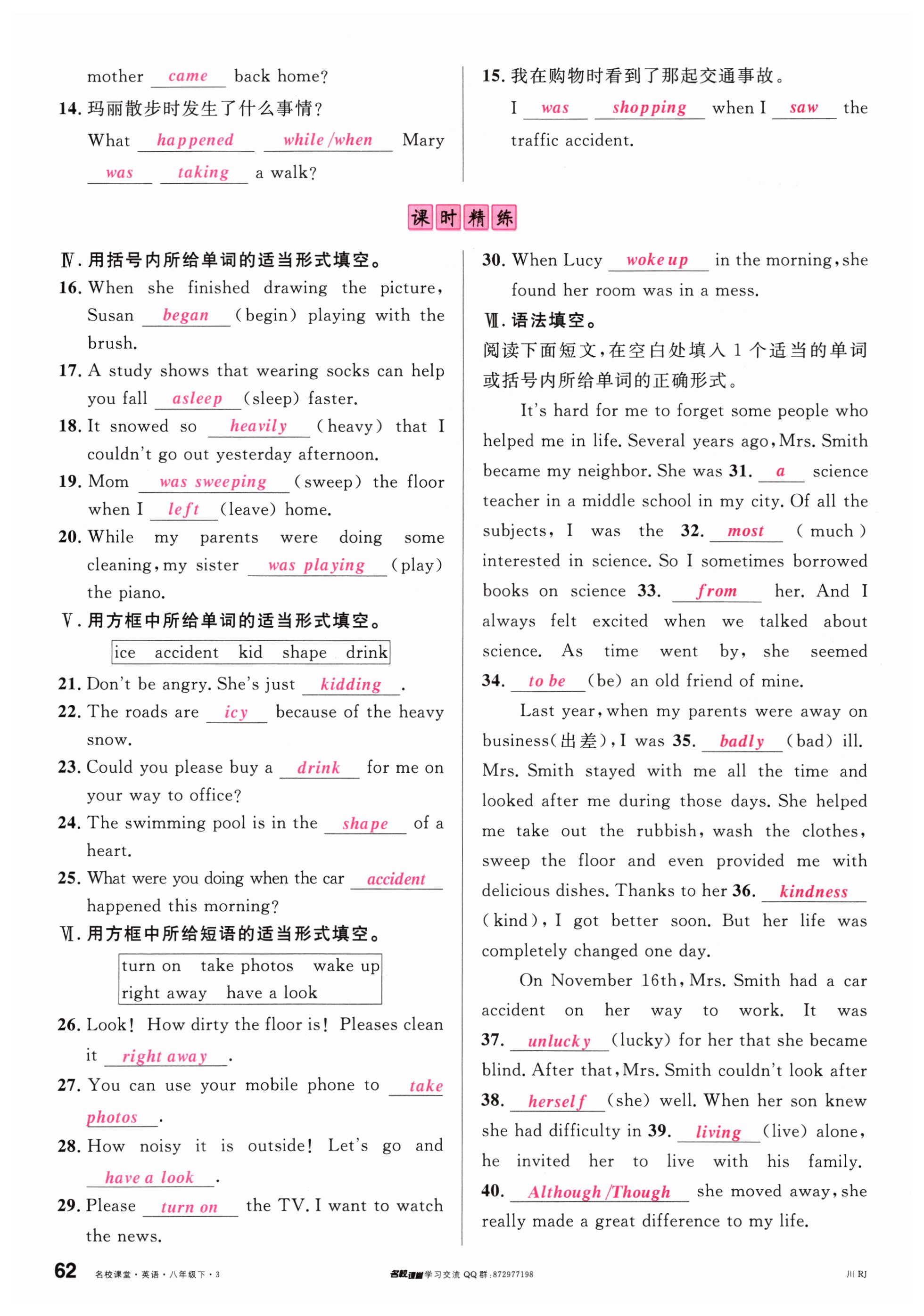 注:目前有些书本章节名称可能整理的还不是很完善,但都是按照顺序排列的,请同学们按照顺序仔细查找。练习册 2024年名校课堂八年级英语下册人教版四川专版 答案主要是用来给同学们做完题方便对答案用的,请勿直接抄袭。