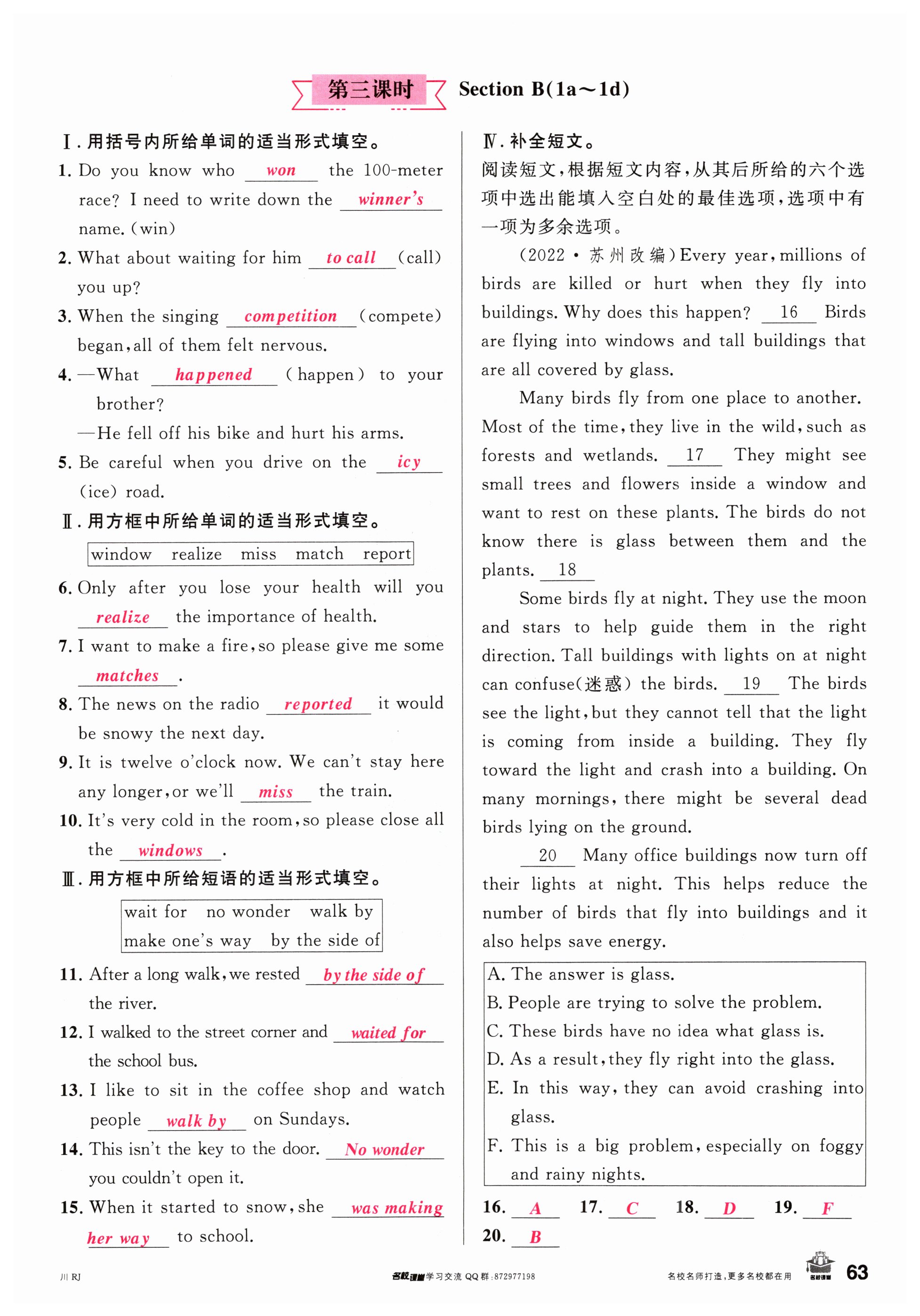 注:目前有些书本章节名称可能整理的还不是很完善,但都是按照顺序排列的,请同学们按照顺序仔细查找。练习册 2024年名校课堂八年级英语下册人教版四川专版 答案主要是用来给同学们做完题方便对答案用的,请勿直接抄袭。