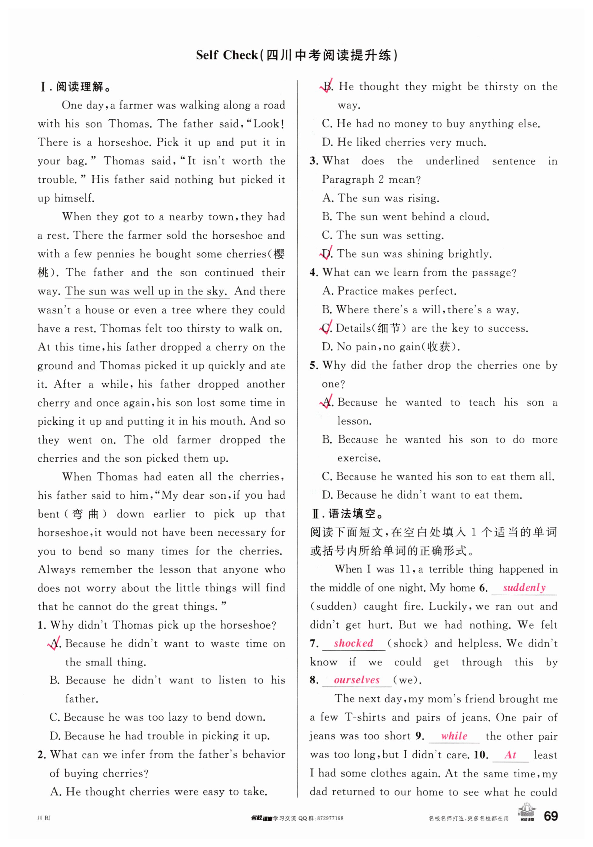 注:目前有些书本章节名称可能整理的还不是很完善,但都是按照顺序排列的,请同学们按照顺序仔细查找。练习册 2024年名校课堂八年级英语下册人教版四川专版 答案主要是用来给同学们做完题方便对答案用的,请勿直接抄袭。