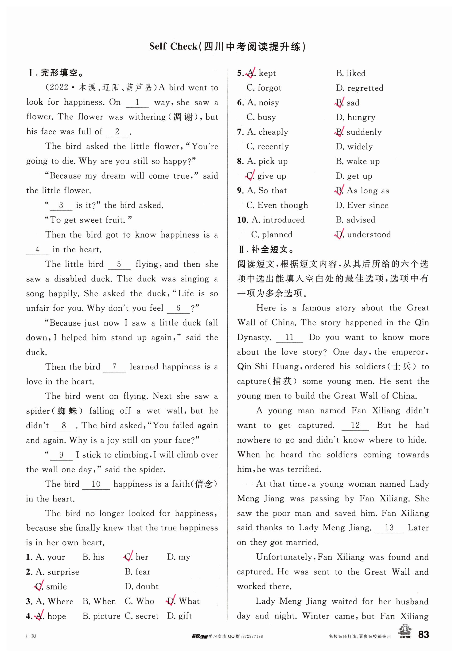 注:目前有些书本章节名称可能整理的还不是很完善,但都是按照顺序排列的,请同学们按照顺序仔细查找。练习册 2024年名校课堂八年级英语下册人教版四川专版 答案主要是用来给同学们做完题方便对答案用的,请勿直接抄袭。