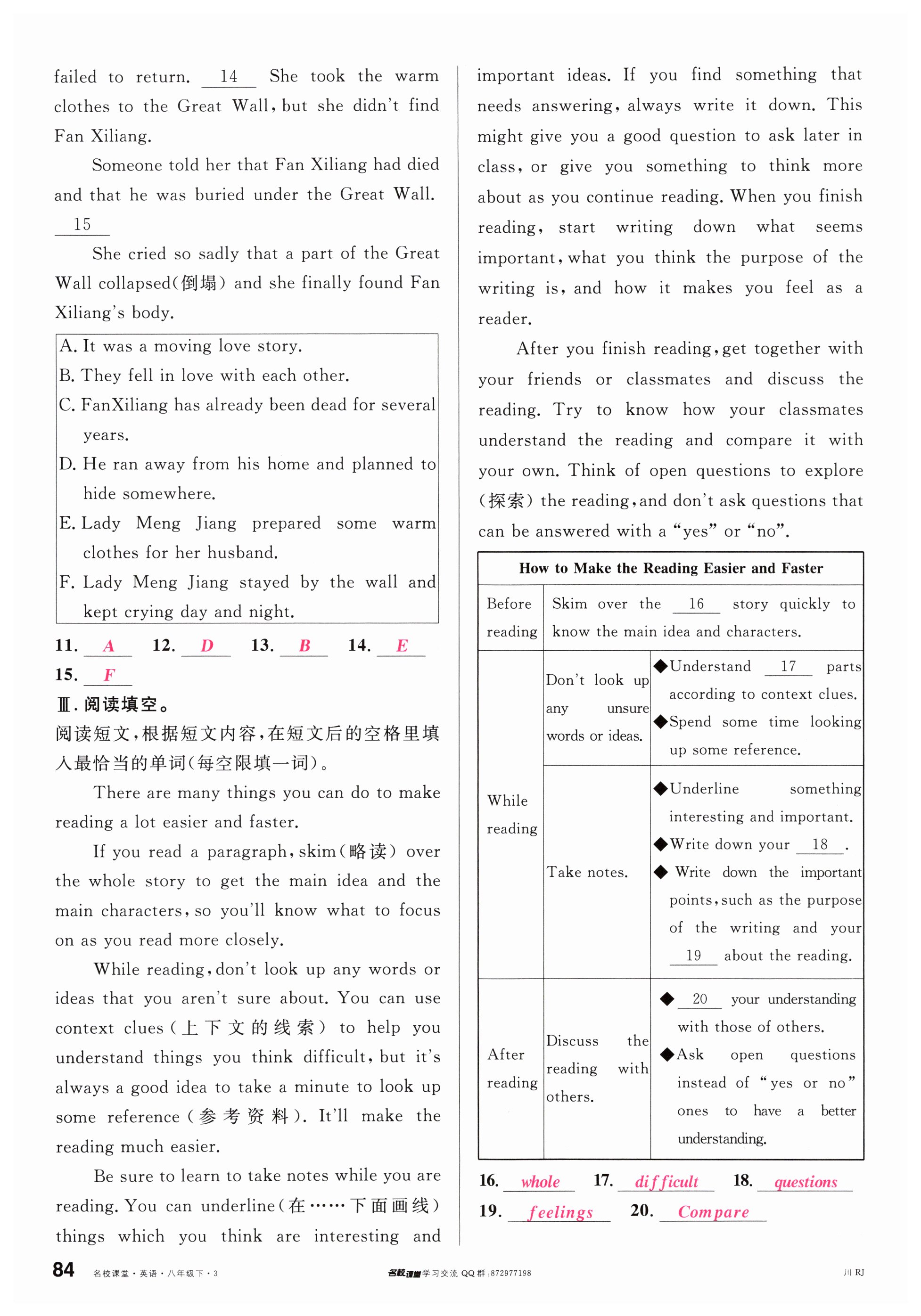 注:目前有些书本章节名称可能整理的还不是很完善,但都是按照顺序排列的,请同学们按照顺序仔细查找。练习册 2024年名校课堂八年级英语下册人教版四川专版 答案主要是用来给同学们做完题方便对答案用的,请勿直接抄袭。