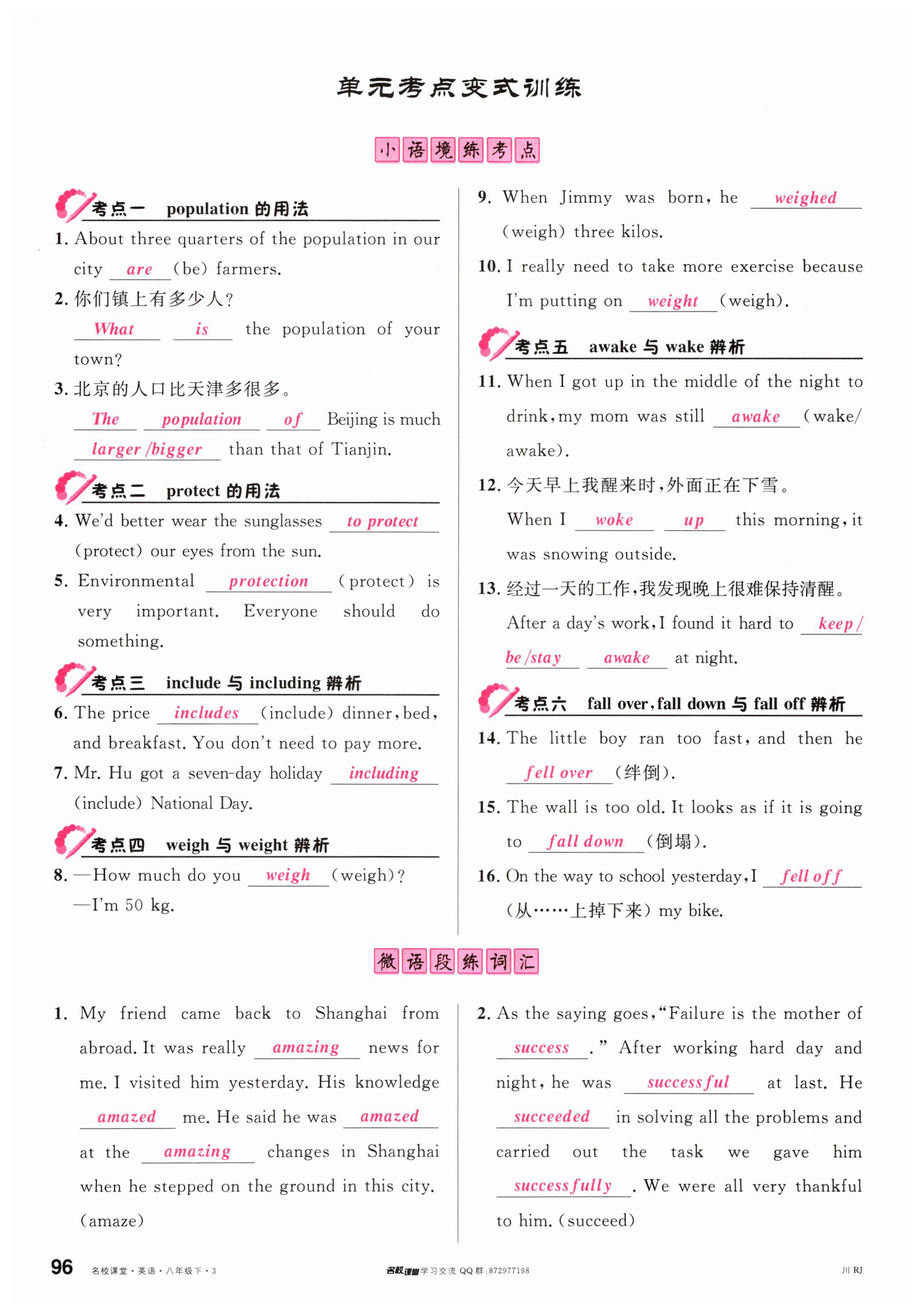 注:目前有些书本章节名称可能整理的还不是很完善,但都是按照顺序排列的,请同学们按照顺序仔细查找。练习册 2024年名校课堂八年级英语下册人教版四川专版 答案主要是用来给同学们做完题方便对答案用的,请勿直接抄袭。