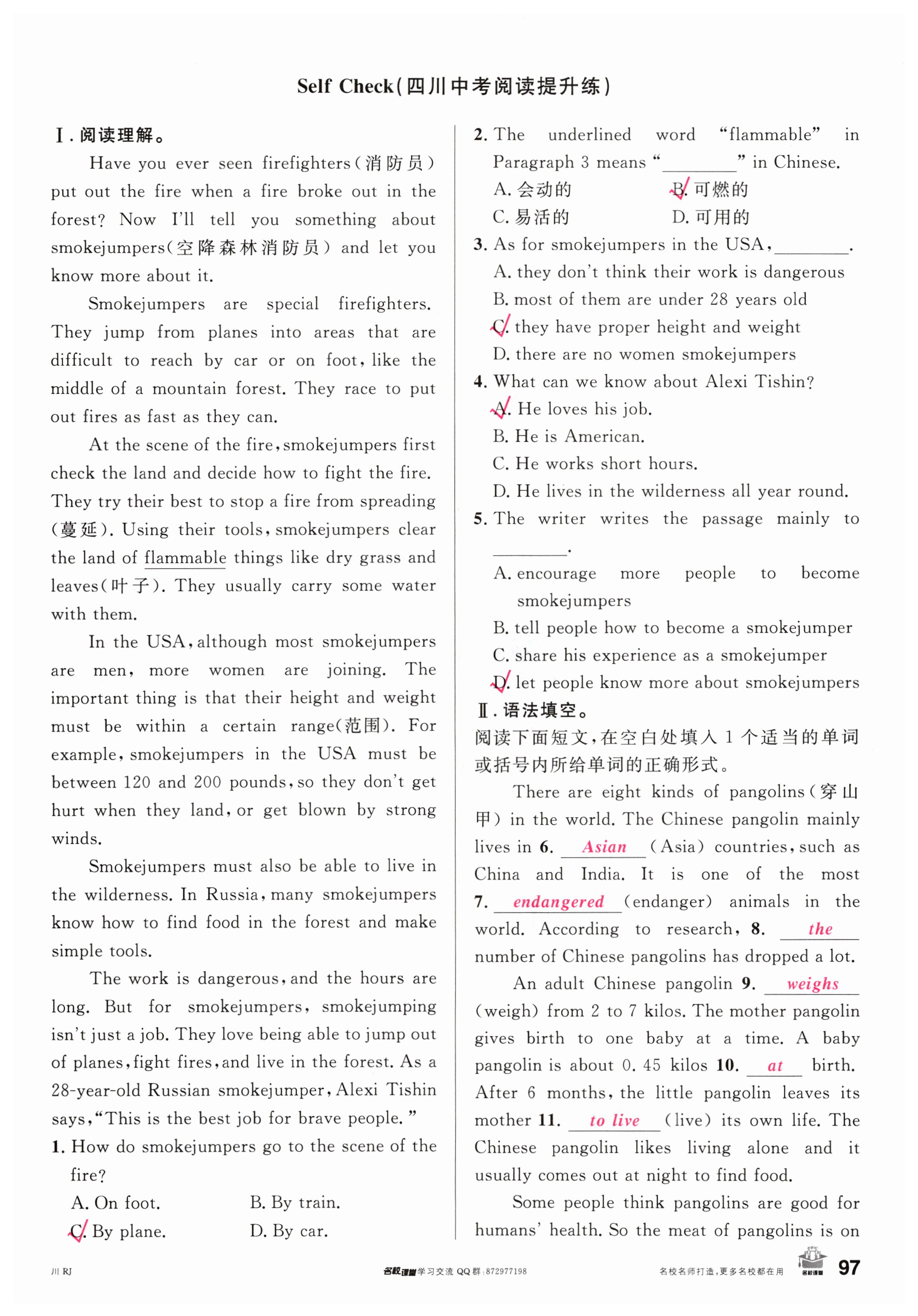 注:目前有些书本章节名称可能整理的还不是很完善,但都是按照顺序排列的,请同学们按照顺序仔细查找。练习册 2024年名校课堂八年级英语下册人教版四川专版 答案主要是用来给同学们做完题方便对答案用的,请勿直接抄袭。