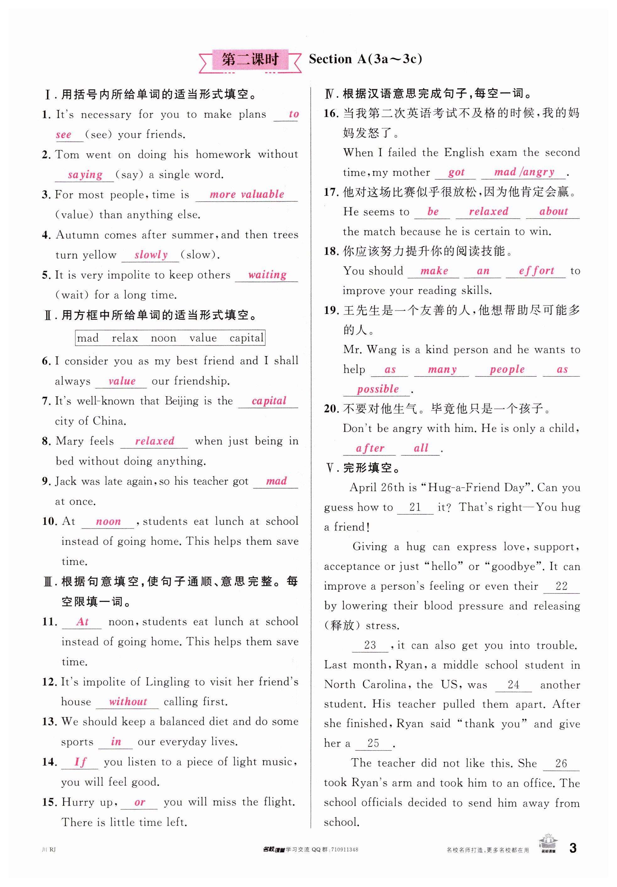 注:目前有些书本章节名称可能整理的还不是很完善,但都是按照顺序排列的,请同学们按照顺序仔细查找。练习册 2024年名校课堂九年级英语下册人教版四川专版 答案主要是用来给同学们做完题方便对答案用的,请勿直接抄袭。