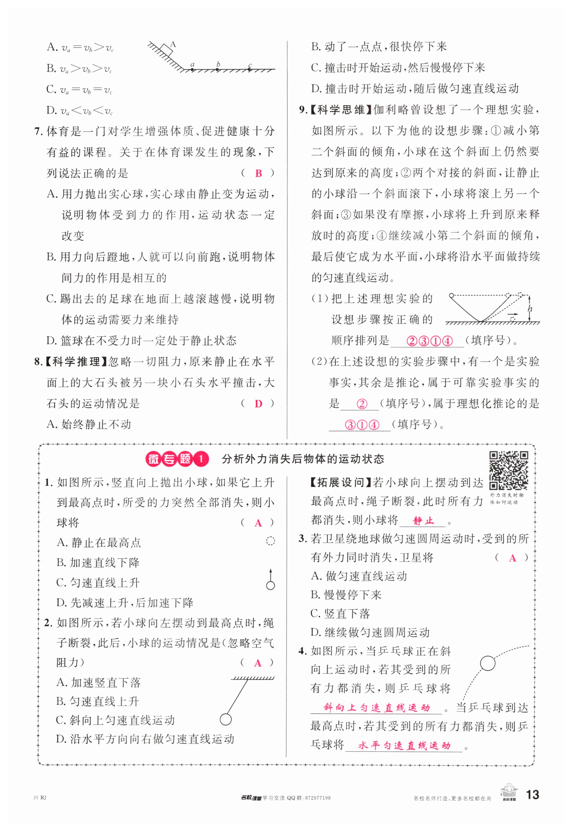 注:目前有些书本章节名称可能整理的还不是很完善,但都是按照顺序排列的,请同学们按照顺序仔细查找。练习册 2024年名校课堂八年级物理下册人教版四川专版 答案主要是用来给同学们做完题方便对答案用的,请勿直接抄袭。