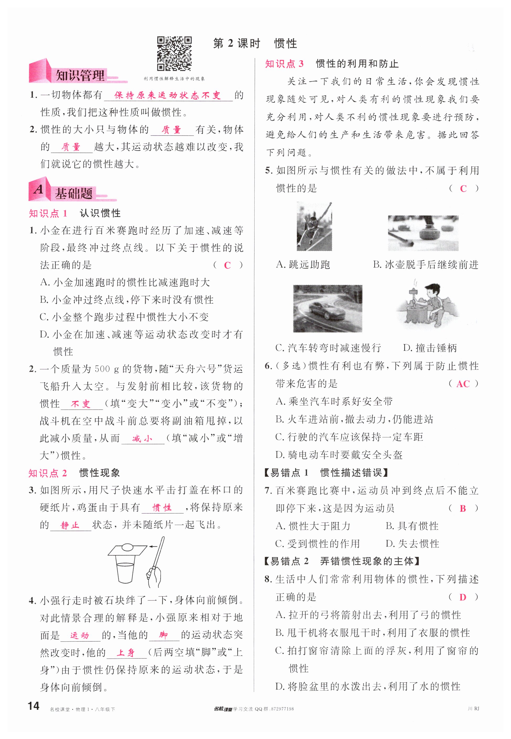 注:目前有些书本章节名称可能整理的还不是很完善,但都是按照顺序排列的,请同学们按照顺序仔细查找。练习册 2024年名校课堂八年级物理下册人教版四川专版 答案主要是用来给同学们做完题方便对答案用的,请勿直接抄袭。