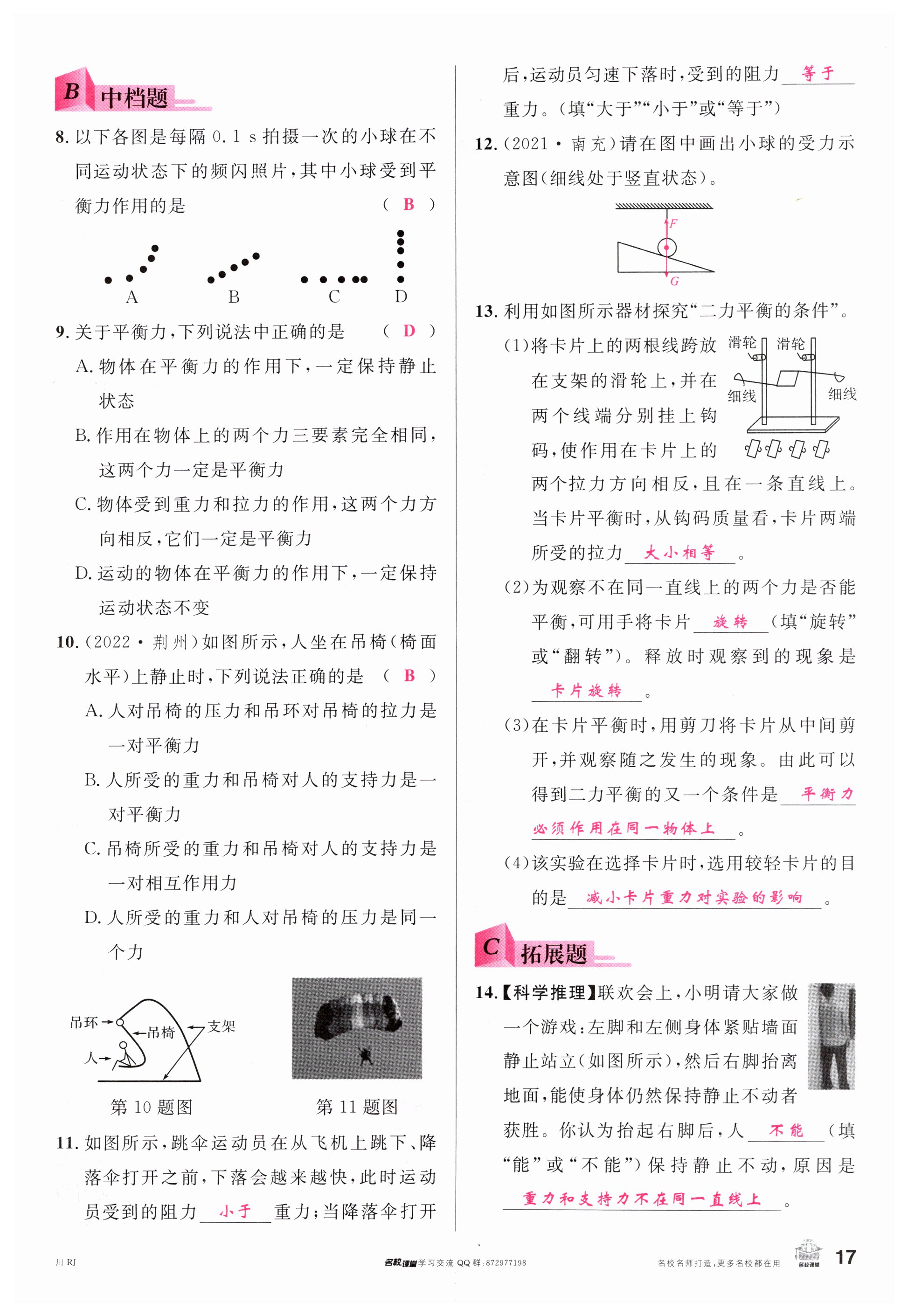 注:目前有些书本章节名称可能整理的还不是很完善,但都是按照顺序排列的,请同学们按照顺序仔细查找。练习册 2024年名校课堂八年级物理下册人教版四川专版 答案主要是用来给同学们做完题方便对答案用的,请勿直接抄袭。