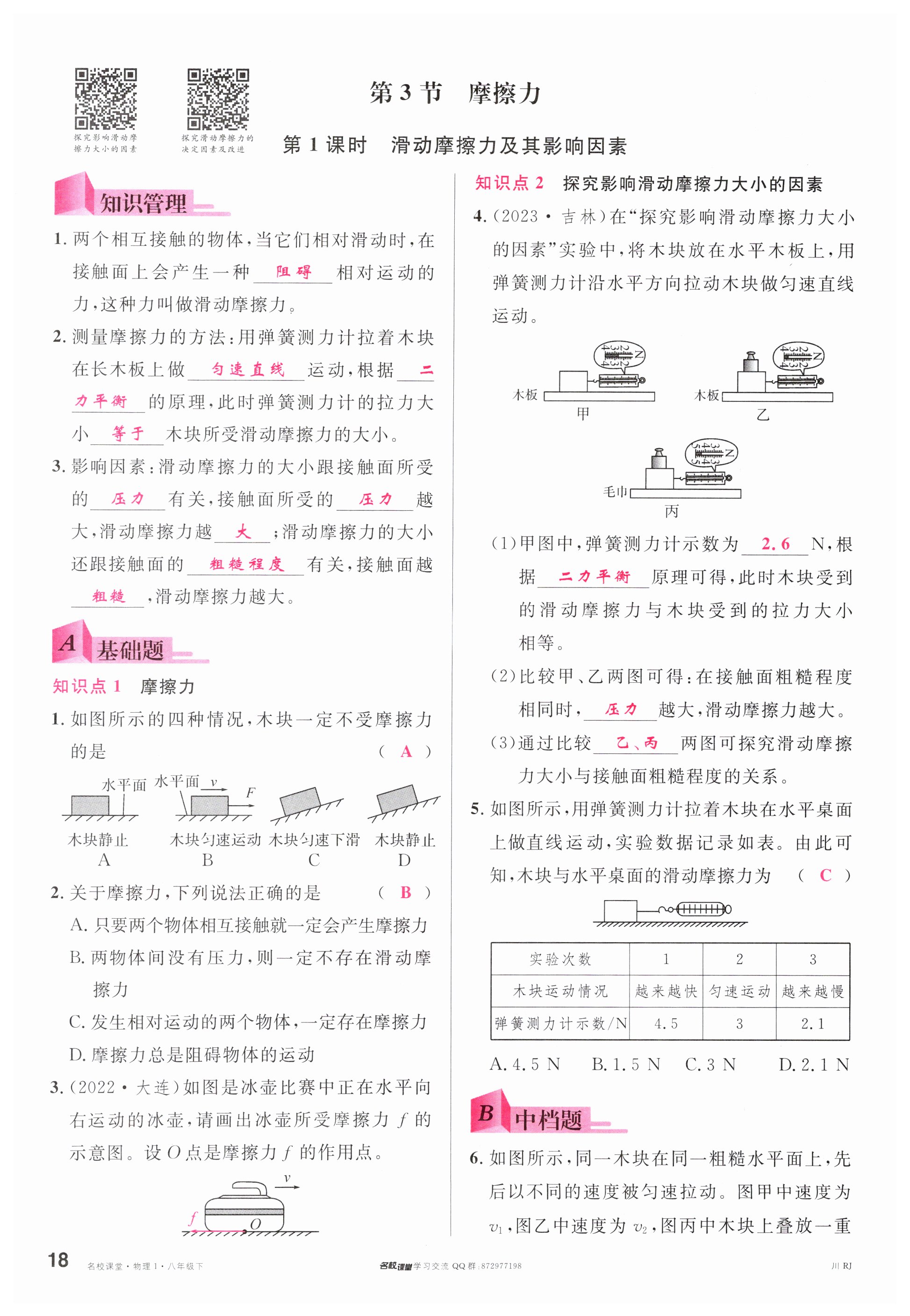 注:目前有些书本章节名称可能整理的还不是很完善,但都是按照顺序排列的,请同学们按照顺序仔细查找。练习册 2024年名校课堂八年级物理下册人教版四川专版 答案主要是用来给同学们做完题方便对答案用的,请勿直接抄袭。
