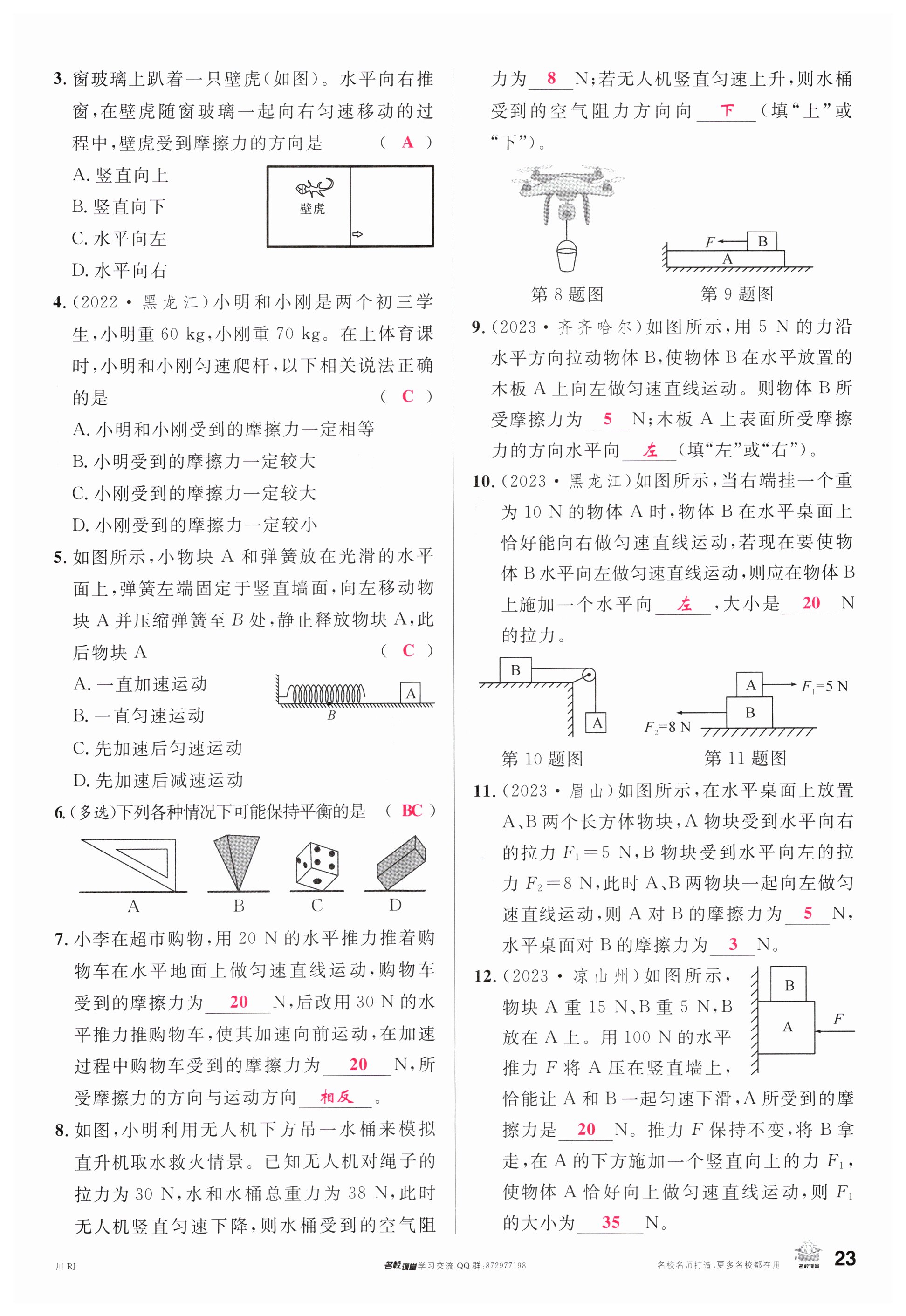 注:目前有些书本章节名称可能整理的还不是很完善,但都是按照顺序排列的,请同学们按照顺序仔细查找。练习册 2024年名校课堂八年级物理下册人教版四川专版 答案主要是用来给同学们做完题方便对答案用的,请勿直接抄袭。