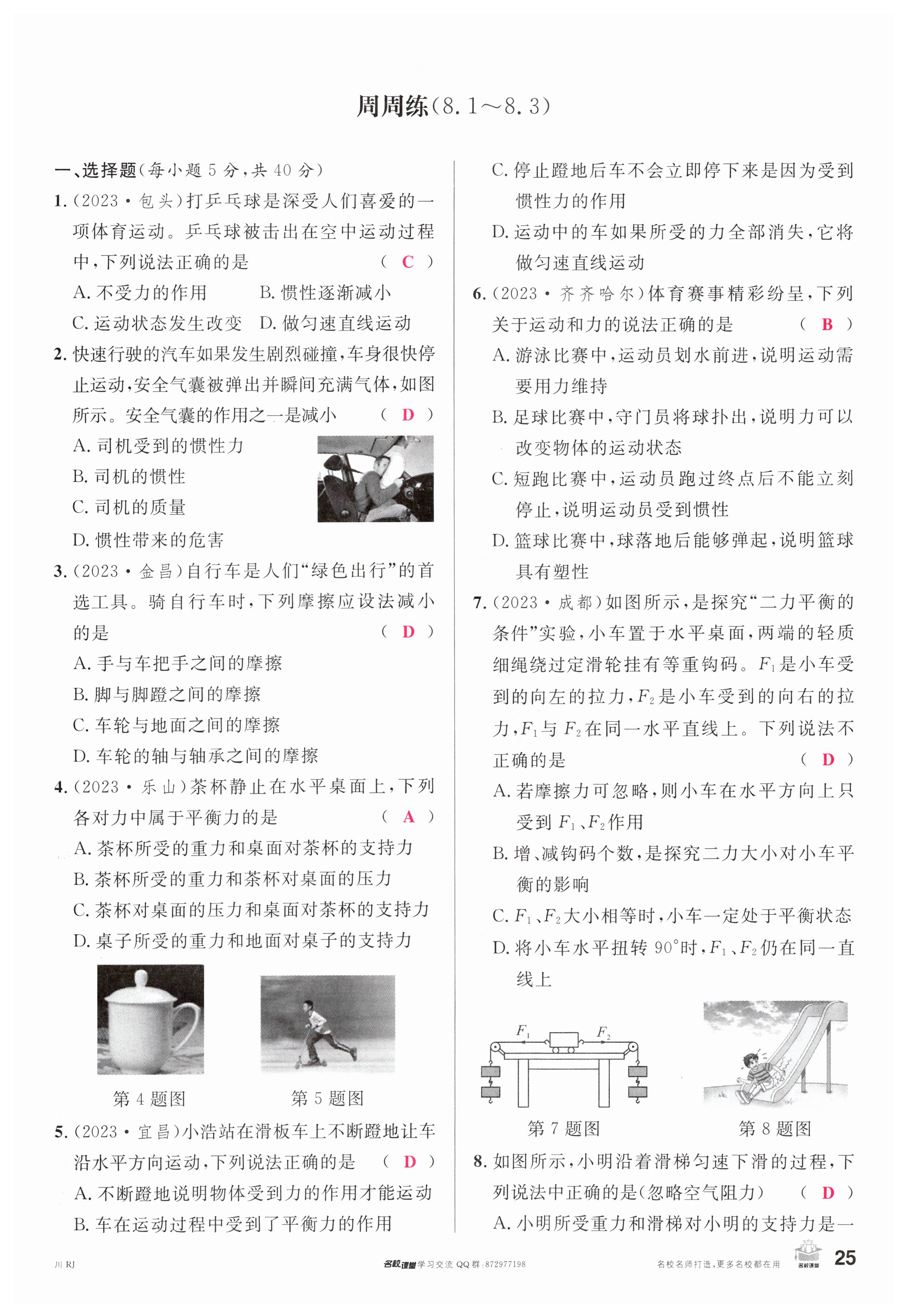 注:目前有些书本章节名称可能整理的还不是很完善,但都是按照顺序排列的,请同学们按照顺序仔细查找。练习册 2024年名校课堂八年级物理下册人教版四川专版 答案主要是用来给同学们做完题方便对答案用的,请勿直接抄袭。