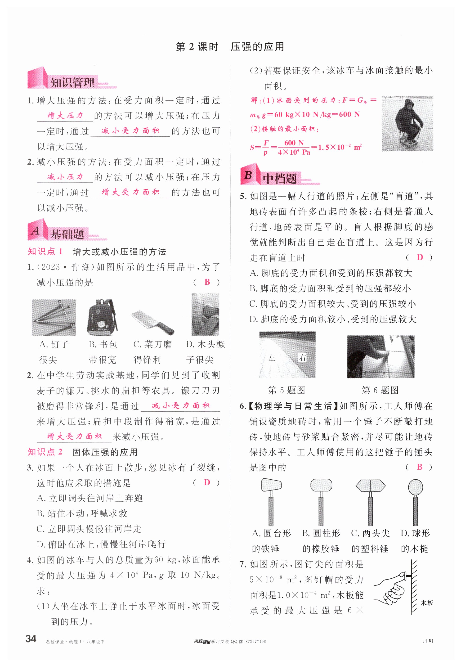注:目前有些书本章节名称可能整理的还不是很完善,但都是按照顺序排列的,请同学们按照顺序仔细查找。练习册 2024年名校课堂八年级物理下册人教版四川专版 答案主要是用来给同学们做完题方便对答案用的,请勿直接抄袭。