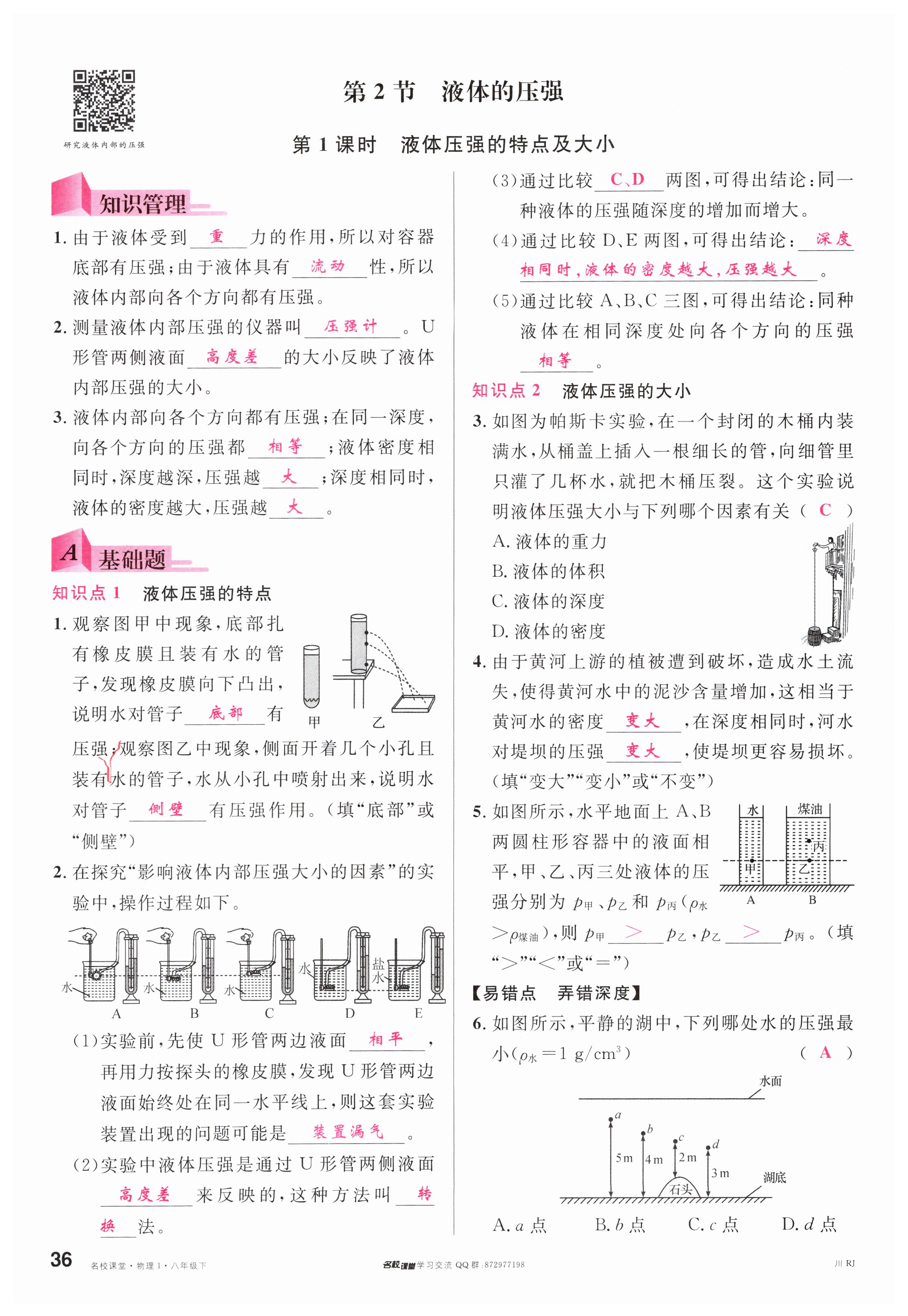 注:目前有些书本章节名称可能整理的还不是很完善,但都是按照顺序排列的,请同学们按照顺序仔细查找。练习册 2024年名校课堂八年级物理下册人教版四川专版 答案主要是用来给同学们做完题方便对答案用的,请勿直接抄袭。
