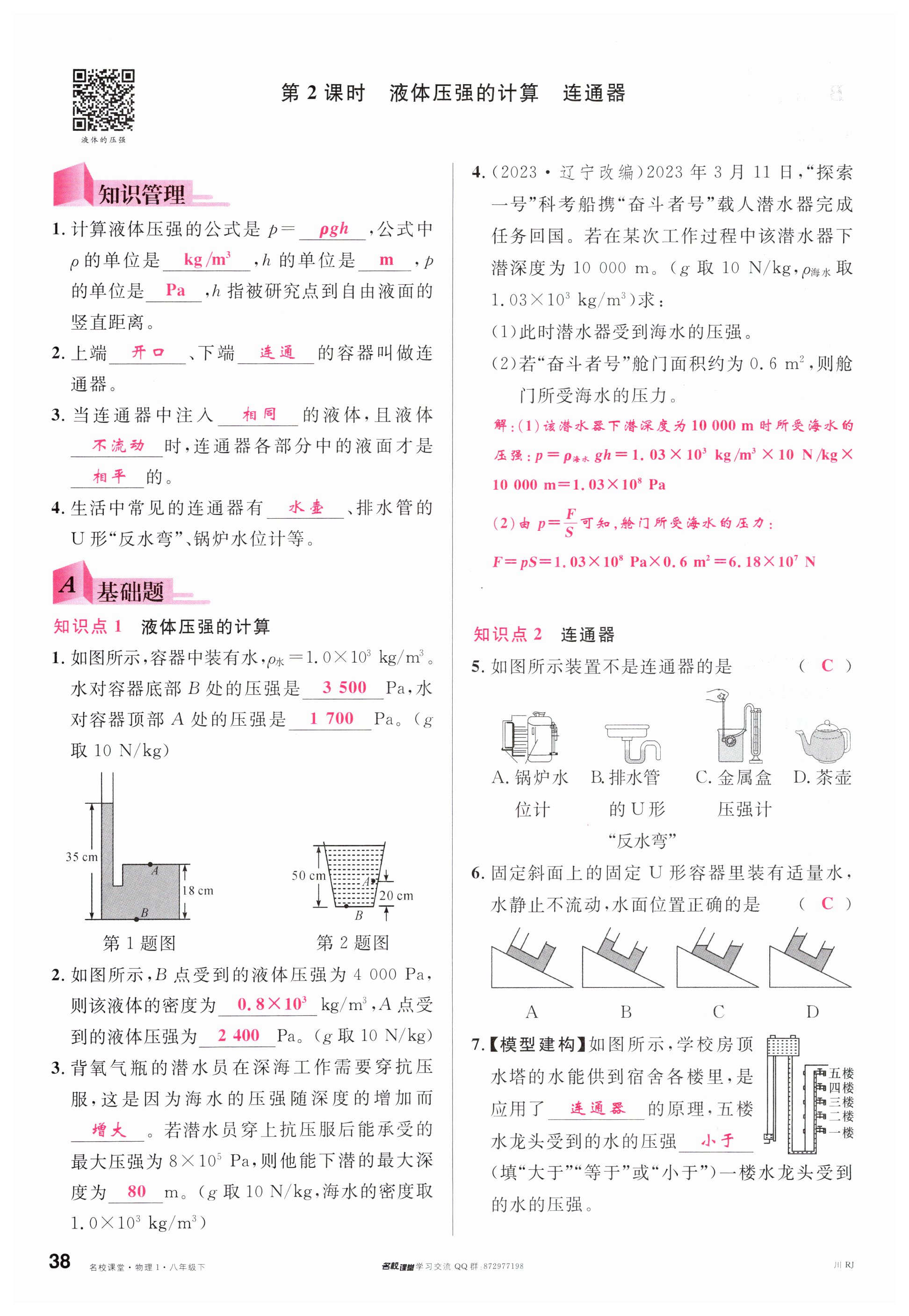 注:目前有些书本章节名称可能整理的还不是很完善,但都是按照顺序排列的,请同学们按照顺序仔细查找。练习册 2024年名校课堂八年级物理下册人教版四川专版 答案主要是用来给同学们做完题方便对答案用的,请勿直接抄袭。