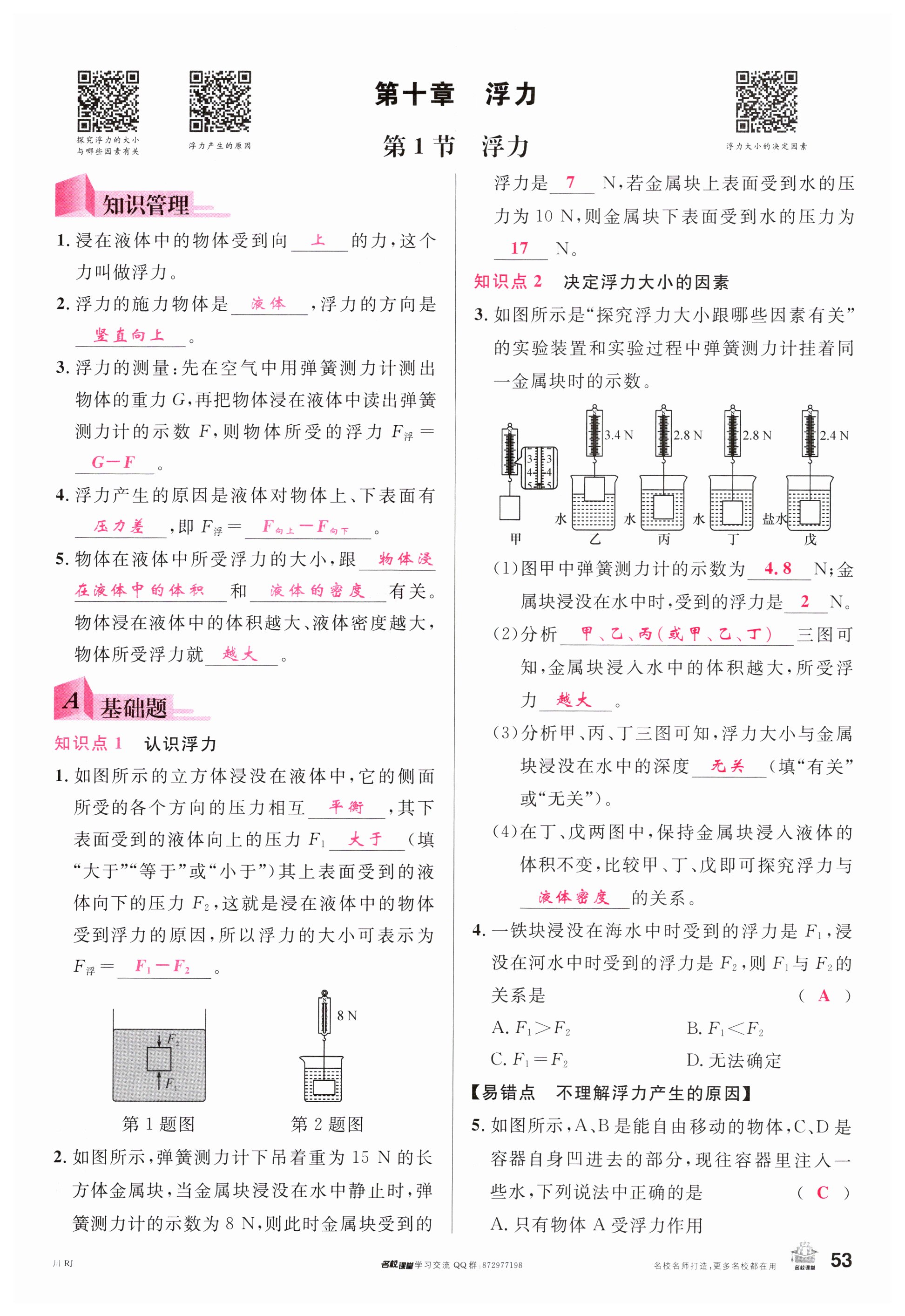 注:目前有些书本章节名称可能整理的还不是很完善,但都是按照顺序排列的,请同学们按照顺序仔细查找。练习册 2024年名校课堂八年级物理下册人教版四川专版 答案主要是用来给同学们做完题方便对答案用的,请勿直接抄袭。
