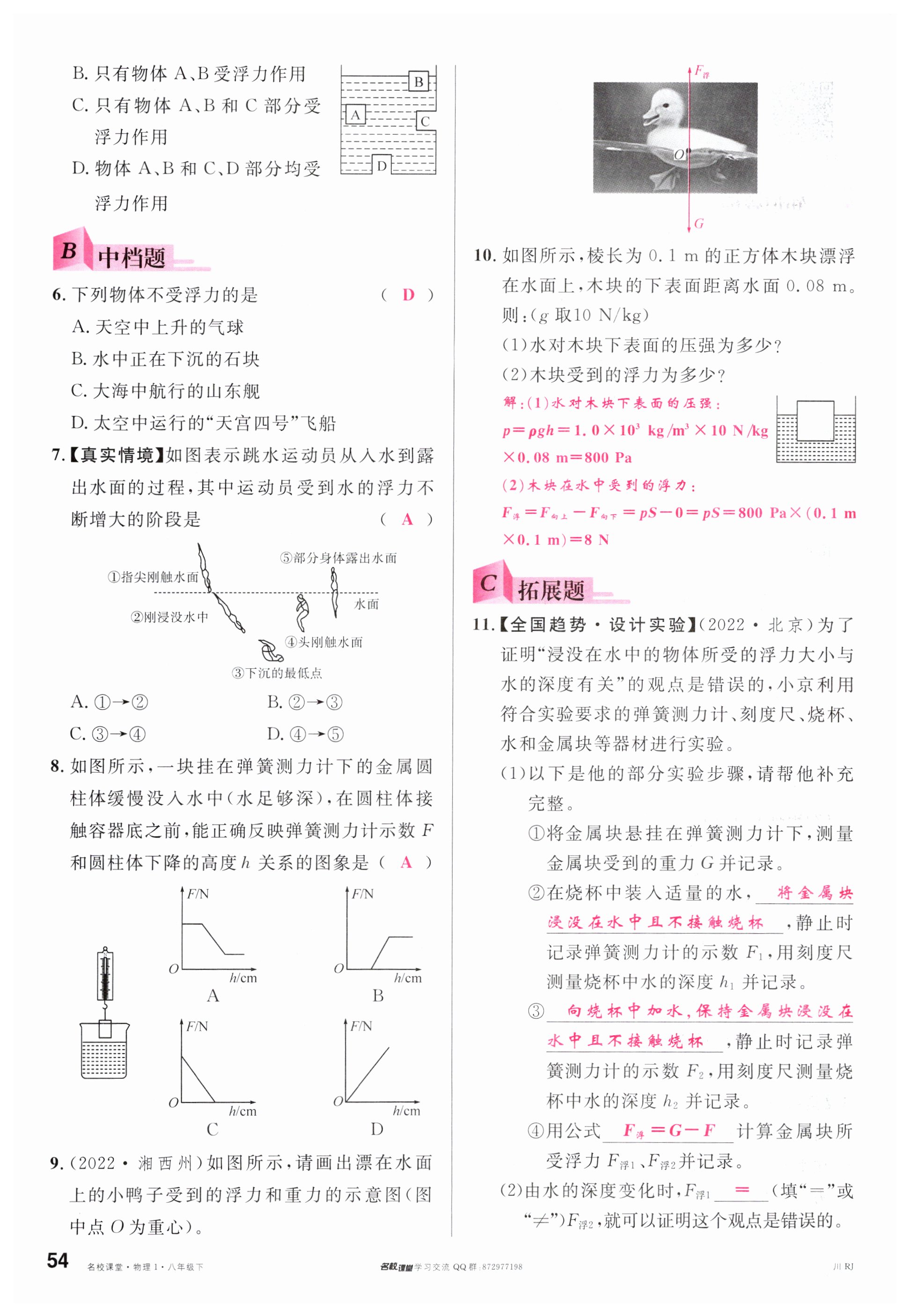 注:目前有些书本章节名称可能整理的还不是很完善,但都是按照顺序排列的,请同学们按照顺序仔细查找。练习册 2024年名校课堂八年级物理下册人教版四川专版 答案主要是用来给同学们做完题方便对答案用的,请勿直接抄袭。
