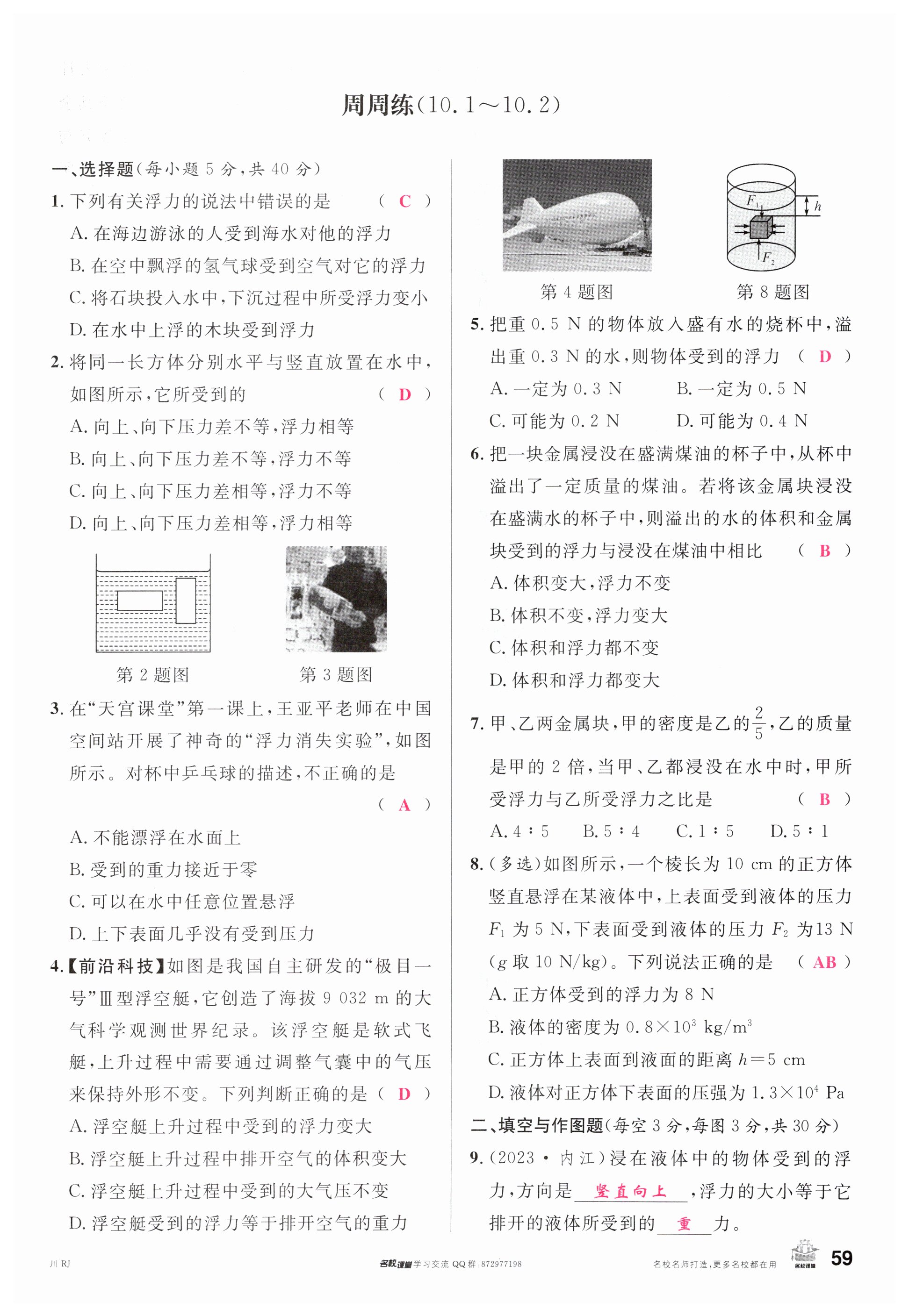 注:目前有些书本章节名称可能整理的还不是很完善,但都是按照顺序排列的,请同学们按照顺序仔细查找。练习册 2024年名校课堂八年级物理下册人教版四川专版 答案主要是用来给同学们做完题方便对答案用的,请勿直接抄袭。