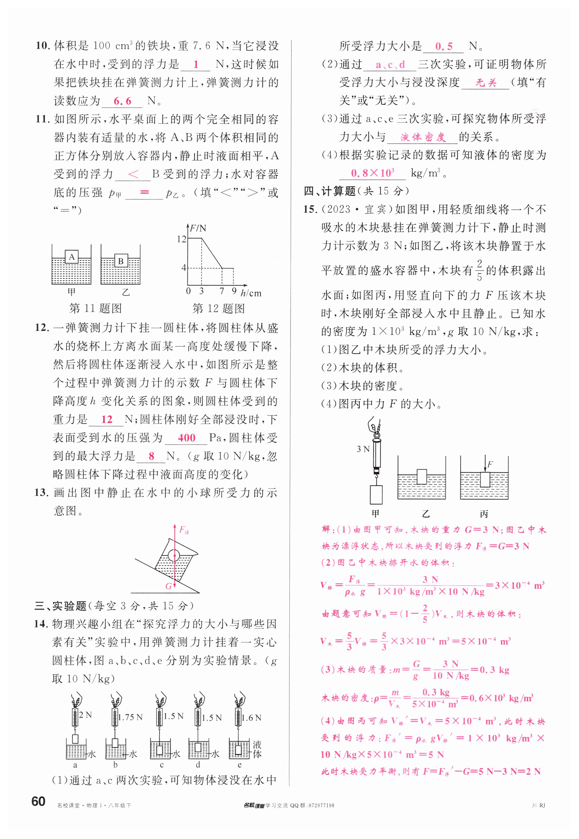 注:目前有些书本章节名称可能整理的还不是很完善,但都是按照顺序排列的,请同学们按照顺序仔细查找。练习册 2024年名校课堂八年级物理下册人教版四川专版 答案主要是用来给同学们做完题方便对答案用的,请勿直接抄袭。